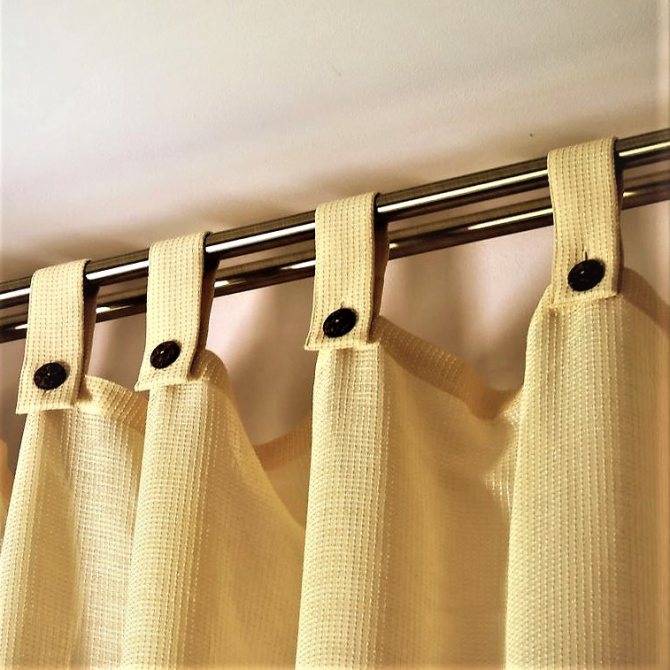 อีกหนึ่งเทคนิคที่ใกล้เคียงกันคือ ผ้าม่านแบบผูก (ties) โดยเย็บเทปหรือสายคาดที่ขอบบน แล้วใช้ผูกกับท่อบัว เหมาะกับสไตล์สบาย ๆ หรือห้องแนวชนบท