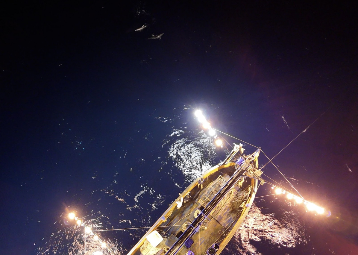 ฝูงโลมาปากขวดที่ว่ายวนเข้ามากินปลาบินบริเวณรอบนอกวงไฟจากเรือปั่นไฟในยามค่ำคืน เป็น หลักฐานสำคัญ ว่าแสงไฟไม่ได้แค่ดึงดูดปลาเล็ก แต่กำลังเรียกทั้งห่วงโซ่อาหารให้มารวมตัวกันในจุดเดียว