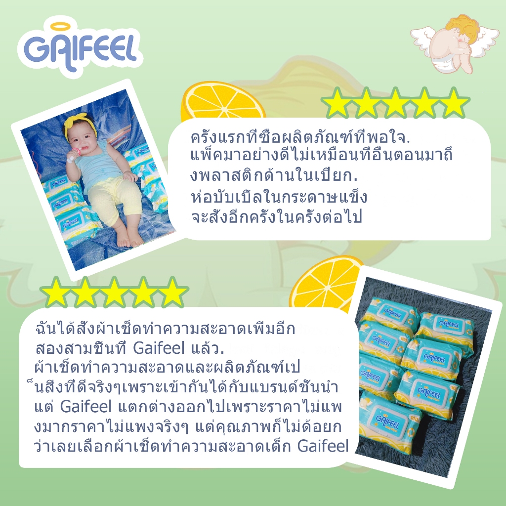 GAIFEEL คือผ้าเช็ดทำความสะอาดแบบเปียกที่ออกแบบมาเพื่อการใช้งานโดยเฉพาะสำหรับเด็กเล็ก เด็กทารก หรือบุคคลที่ต้องการผลิตภัณฑ์อ่อนโยนต่อผิว โดยใช้วัตถุดิบที่เน้นความปลอดภัย เช่น ผ้าเนื้อหนา นุ่ม ไม่ทำให้ระคายเคือง และไม่ผสมน้ำหอมหรือกลิ่นใด ๆ เพื่อให้สามารถใช้งานได้ทุกจุดบนร่างกายอย่างปลอดภัย