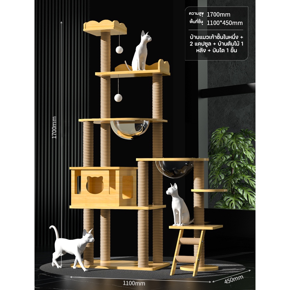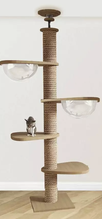 เหมาะกับบ้านที่มีเพดานสูง น้องแมวจะได้ปีนป่ายแบบเต็มที่ ปรับระดับได้ตามพื้นที่ ใช้เสาแข็งแรงรองรับได้หลายตัว เหมาะกับบ้านที่อยากให้แมวออกกำลังกายโดยไม่เปลืองพื้นที่พื้น