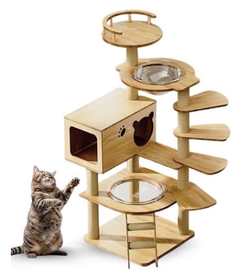 เป็นโครงสร้างแบบตั้งสูง มีหลายชั้นและมีเสาเกาไว้ให้แมวลับเล็บ จุดประสงค์หลักคือให้แมวปีนป่าย ออกกำลังกาย และเล่นสนุก เหมาะสำหรับแมวที่กระฉับกระเฉงบ้านแมว (Cat House)