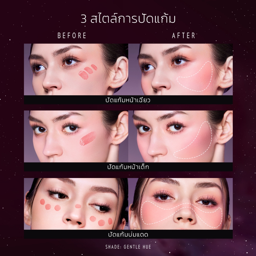 ใช้ปลายนิ้วเกลี่ยเบา ๆ ให้เนื้อบลัชกลืนไปกับผิว