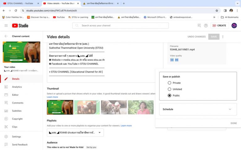 เมื่อตรวจสอบชื่อวิดีโอ คำอธิบาย แท็ก Thumbnail และการตั้งค่าความเป็นส่วนตัวเรียบร้อยแล้ว ให้กดปุ่ม “Save”