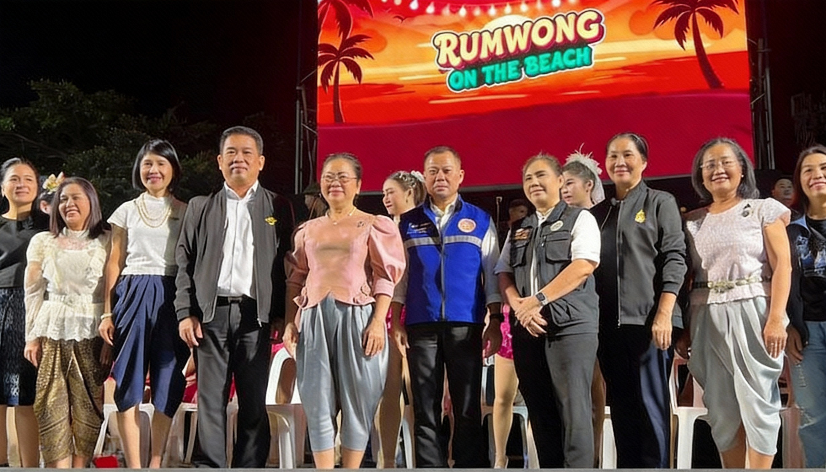 ชายหาดเจ้าสำราญถูกจัดให้เป็นเวทีกลางแจ้ง เปิดโล่งรับลมทะเล ประดับด้วยไฟหลากสี สร้างฟีลเหมือนดิสโก้ริมเล แต่ยังคงหัวใจความเป็นไทยเต็มร้อย