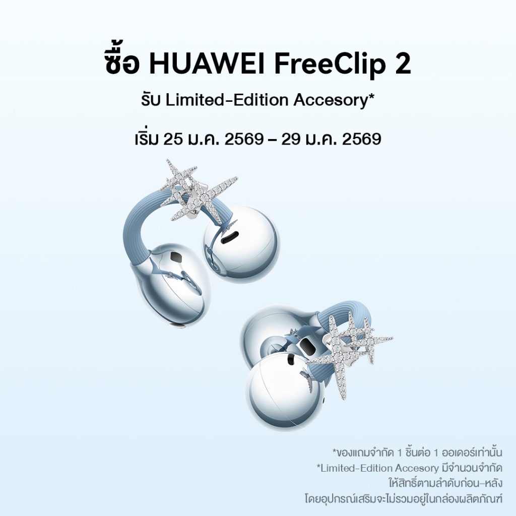 และนี่คือจุดที่ HUAWEI FreeClip 2 โผล่ขึ้นมาแบบเท่ ๆ พร้อมประกาศตัวว่าเป็น หูฟัง Open-Ear TWS รุ่นใหม่ล่าสุด ที่ไม่ได้มาเล่นแค่เรื่องเสียง แต่ยกทั้งดีไซน์ วัสดุ และ AI มาอัปเกรดใหม่ทั้งระบบ