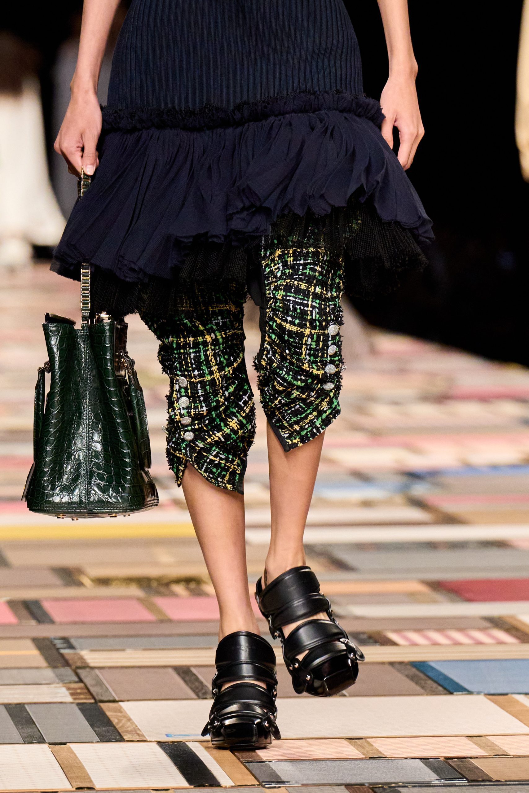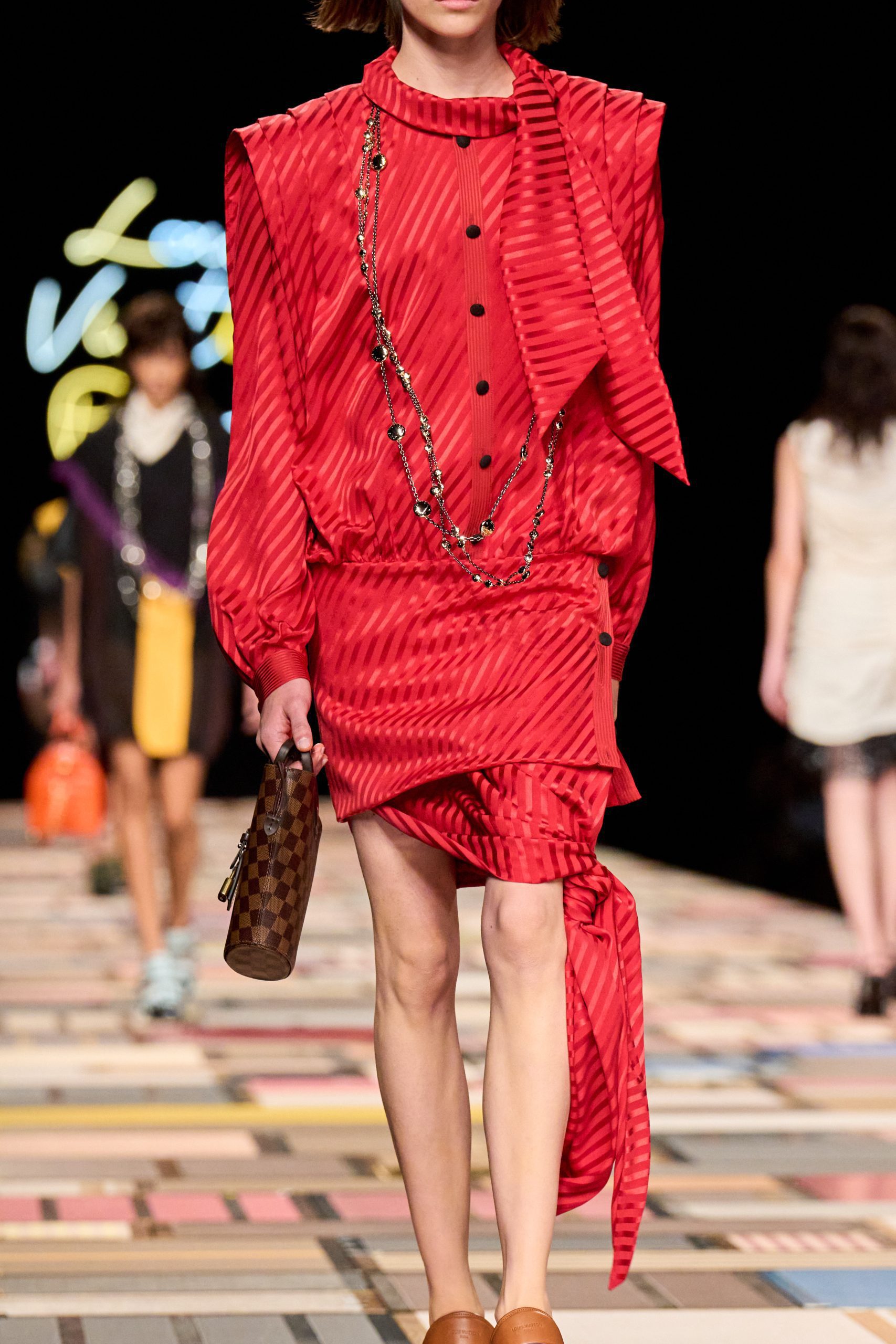 บนรันเวย์แบบใหม่ที่ตั้งเด่นอยู่กลางฮอลล์ สร้างจากทรังก์ที่เรียงซ้อนกันราวกับบล็อก Minecraft เหล่านางแบบเดินไปข้างหน้าในเส้นตรง คล้ายกำลังเดินเข้าสู่อนาคตที่มีทั้งกลิ่นอายประวัติศาสตร์และโลกอนาคตผสานอยู่ด้วยกัน