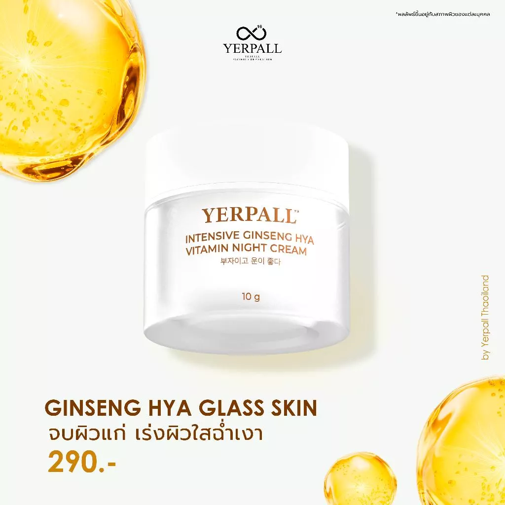 ผลิตภัณฑ์อย่าง Yerpall ครีมโสมไฮยา จึงถูกพัฒนาขึ้นเพื่อให้สอดคล้องกับกระบวนการฟื้นฟูผิวในช่วงเวลากลางคืน