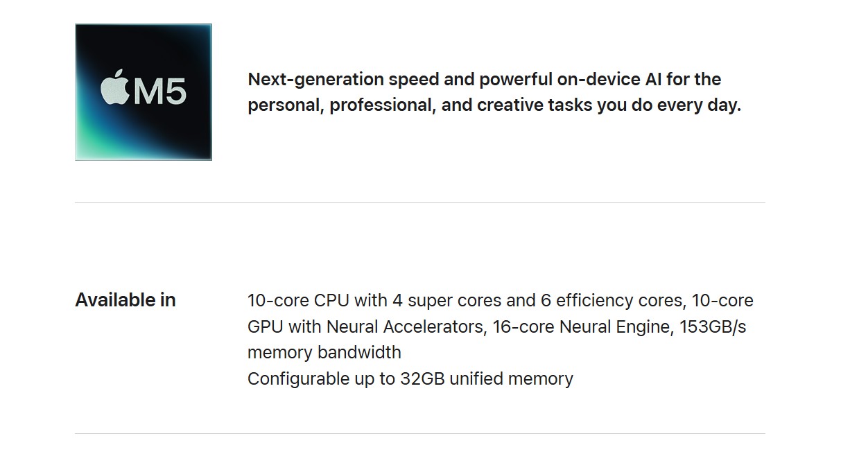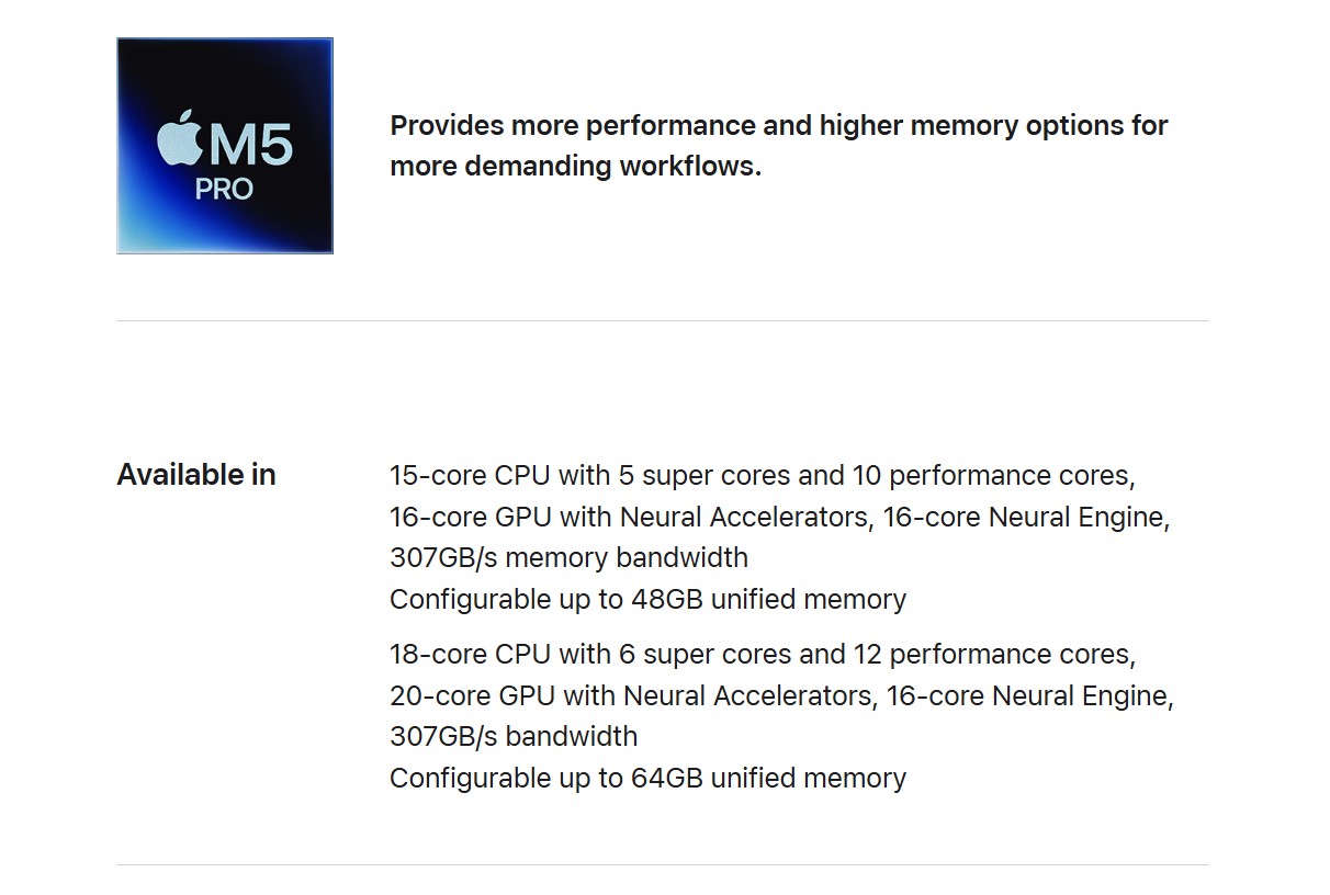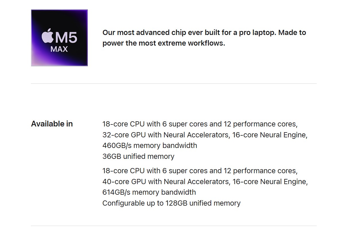 และตัวเลขเดียวกันนี้ถูกใช้ใน M5 Pro และ M5 Max