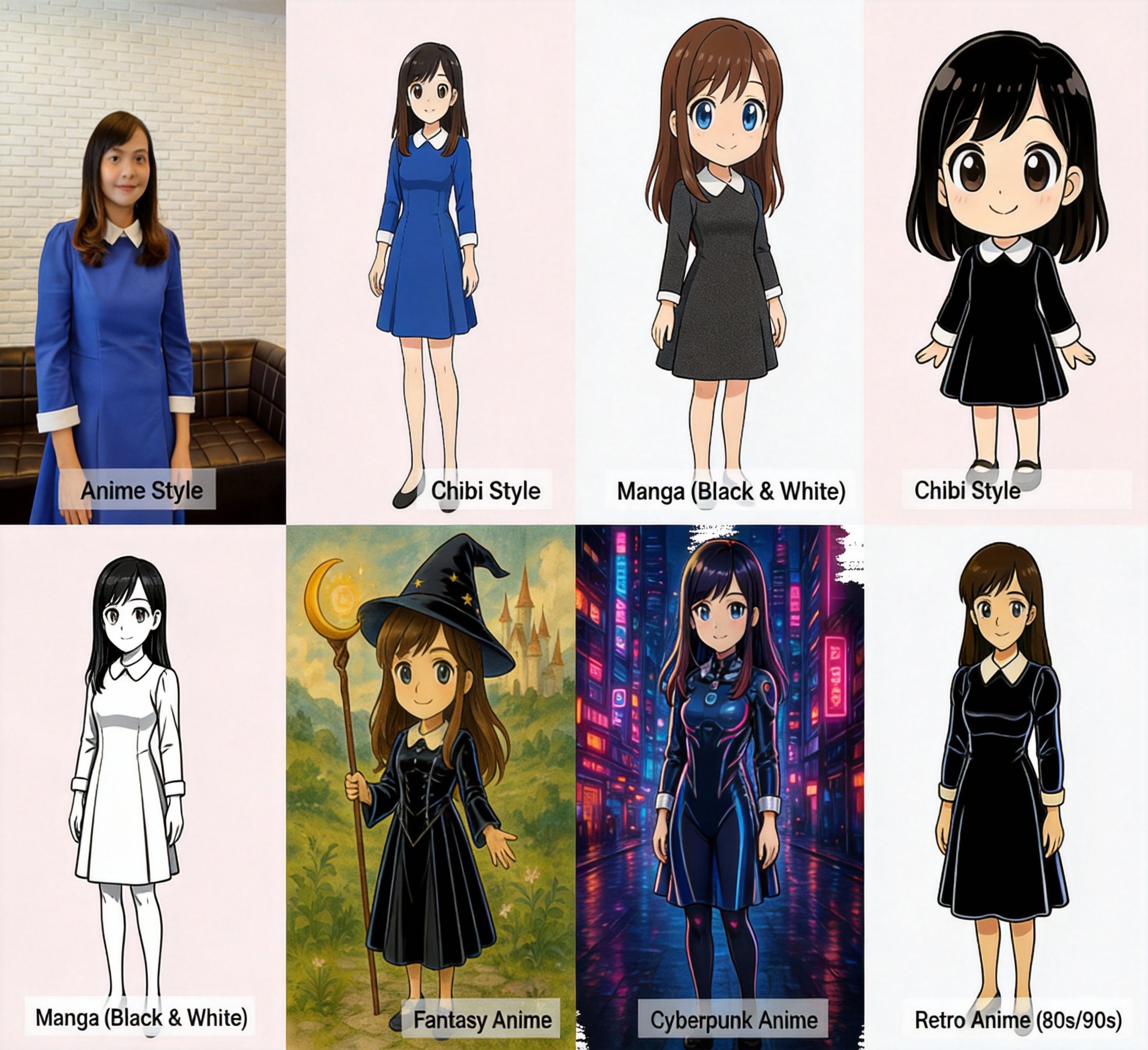 ออกแบบคาแรกเตอร์ตัวเองในหลายสไตล์ เช่น Sci-Fi, Ghibli, Manga, Realistic