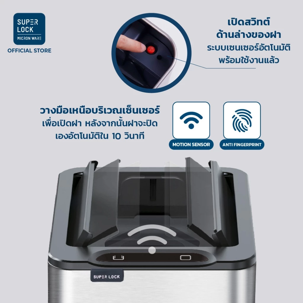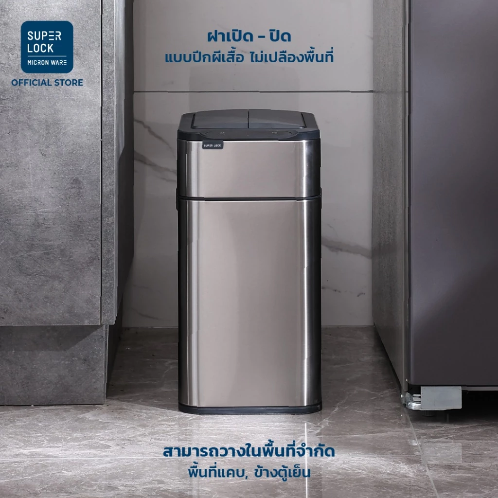 Super Lock เป็นแบรนด์ที่หลายคนคุ้นเคยในด้านอุปกรณ์ภายในบ้าน โดยถังขยะแบบเซ็นเซอร์ของ Super Lock โดดเด่นด้วยโครงสร้าง สแตนเลส ที่แข็งแรง ทนทาน และดูสะอาดตา พร้อมระบบเปิด-ปิดอัตโนมัติที่ช่วยเพิ่มความสะดวกและสุขอนามัย
