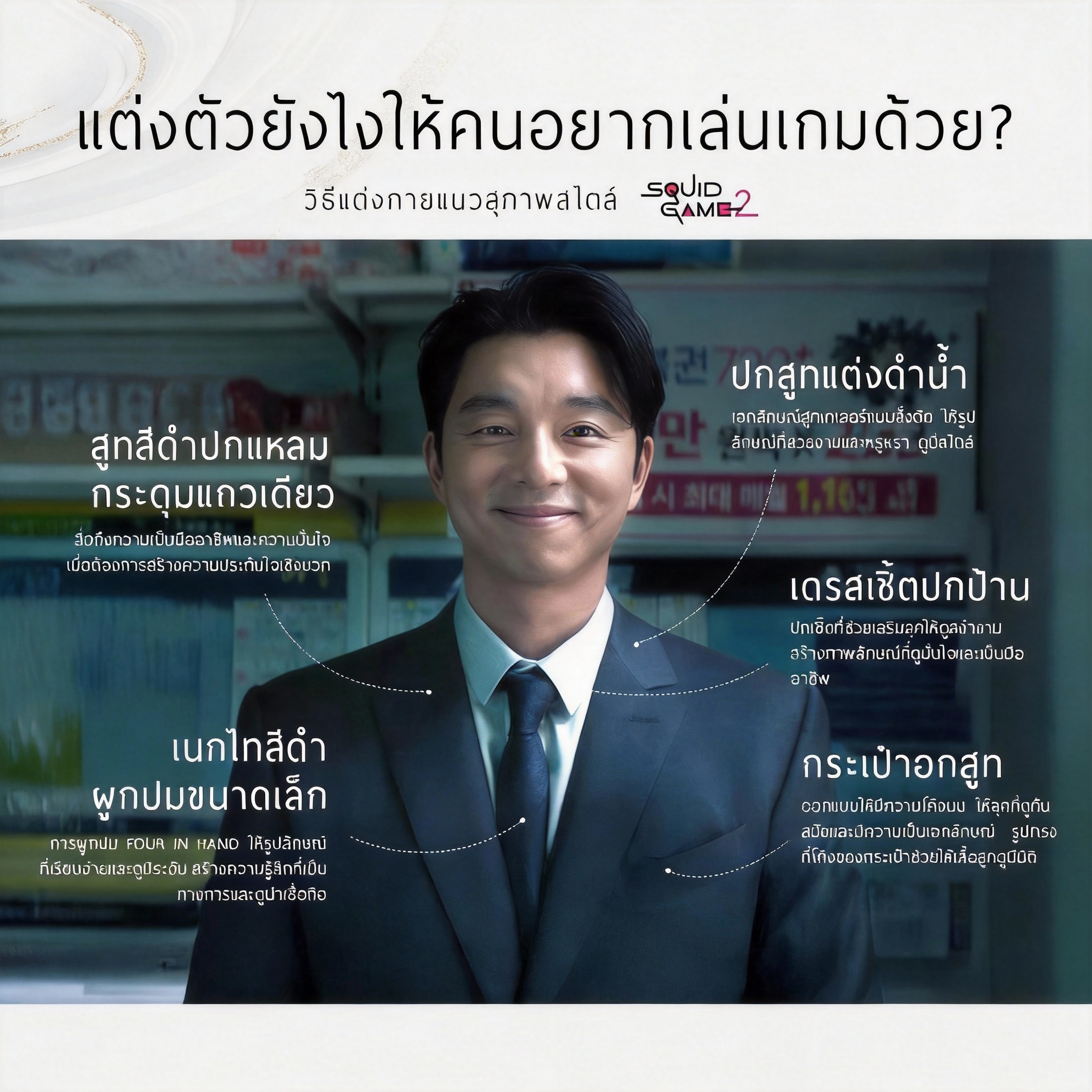 อยากได้ลุคแบบชายชุดสูทใน Squid Game 2 ไม่จำเป็นต้องก็อปทุกอย่างเป๊ะ ๆ แต่สามารถนำหลักการไปปรับใช้ให้เข้ากับตัวเองได้ เช่น