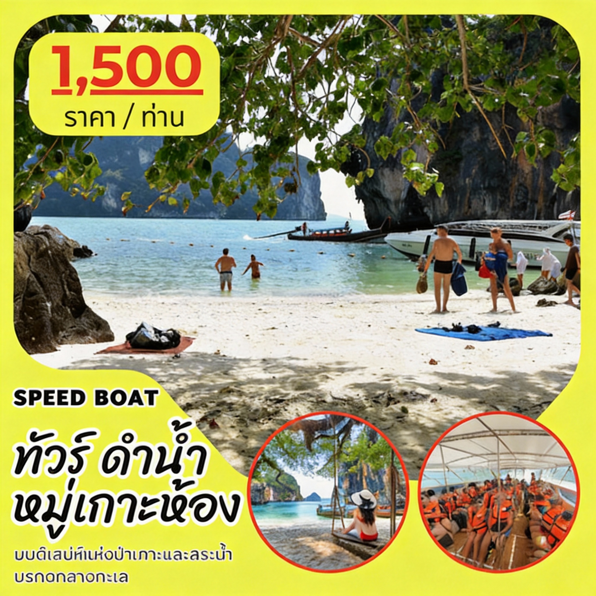 ทริป ทัวร์เกาะห้องโดยเรือสปีดโบ๊ท คือคำตอบสำหรับสายชอบความเร็วแต่ยังรักความสบาย นั่งเรือสปีดโบ๊ทลำทันสมัย มุ่งหน้าสู่หมู่เกาะห้อง ที่หลายคนยกให้เป็น อัญมณีเม็ดงามที่สุดของทะเลกระบี่