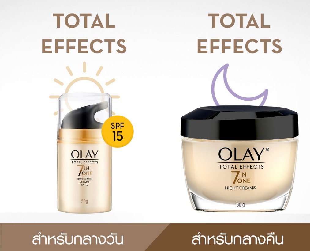 Olay เป็นแบรนด์สกินแคร์ที่มีชื่อเสียงยาวนานด้านการดูแลผิวและชะลอริ้วรอย โดยไลน์ Total Effects ถูกพัฒนาขึ้นเพื่อดูแลสัญญาณแห่งวัยหลายประการพร้อมกันในผลิตภัณฑ์เดียว