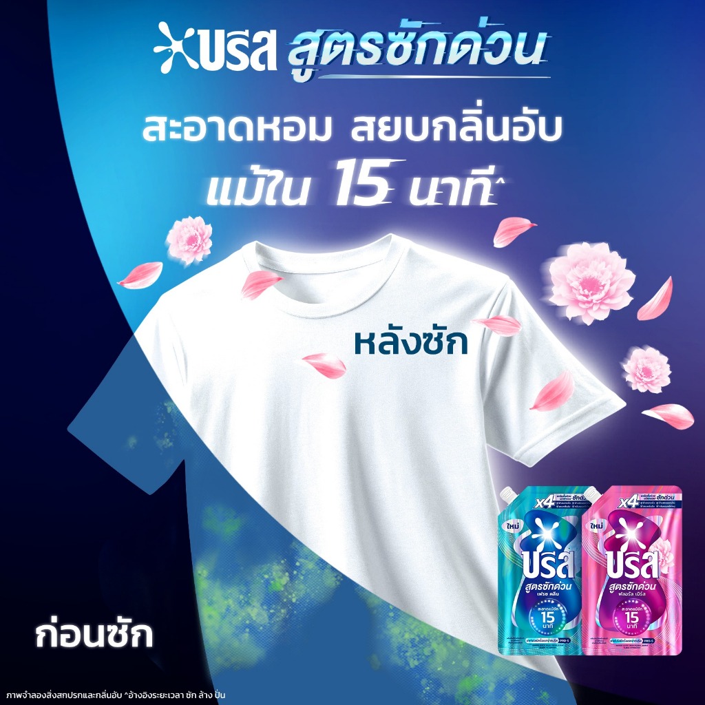 บรีส สูตรซักด่วน 15 นาที ใช้เทคโนโลยีที่ช่วยให้สารทำความสะอาดแทรกซึมเข้าสู่เส้นใยผ้าได้อย่างรวดเร็ว ขจัดคราบเหงื่อ กลิ่นอับ และสิ่งสกปรกที่มองไม่เห็น พร้อมเติมกลิ่นหอมสะอาดที่ไม่ฉุนจนเกินไป ผลลัพธ์ที่ได้คือเสื้อผ้าที่ให้ความรู้สึกสะอาด นุ่ม และมีกลิ่นหอมละมุนแบบเป็นธรรมชาติ