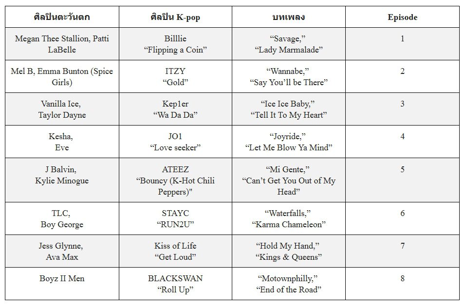 คอนเซ็ปต์รายการ: K-pop รีมิกซ์เพลงฮิตฝั่งตะวันตก
