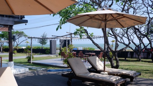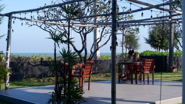 อาคารไม้ริมทะเลที่เราเห็นสวย ๆ นั้นคือ The Pavilion ชั้นบนใช้เป็นโซนนวดสปา ส่วนชั้นล่างคือหนึ่งในร้านอาหารดังของปากน้ำปราณ ที่เปิดให้บริการทั้งมื้อกลางวันและมื้อเย็น