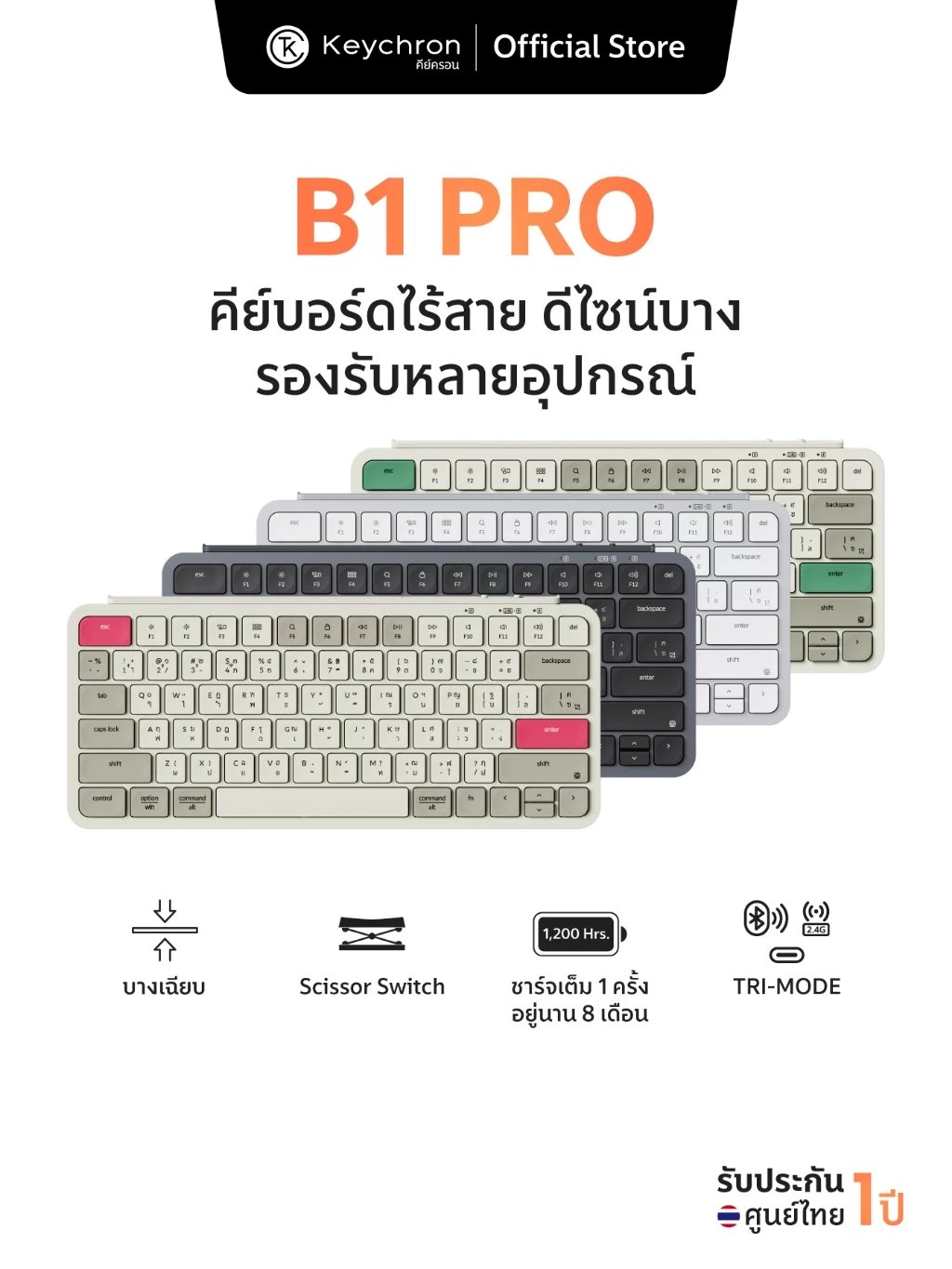 Keychron B1 Pro Ultra-Slim Wireless Keyboard เหมาะกับผู้ใช้ที่ต้องการคีย์บอร์ดไร้สายแบบเบาสบาย ตัวบางมาก เชื่อมต่อได้หลายอุปกรณ์ และมีแบตเตอรี่ยาวนานแบบแทบลืมชาร์จ โดยยังคงการใช้งานระดับจริงจังด้วยสวิตช์แบบกรรไกรและเลย์เอาต์ 75% ที่มีปุ่มจำเป็นครบ