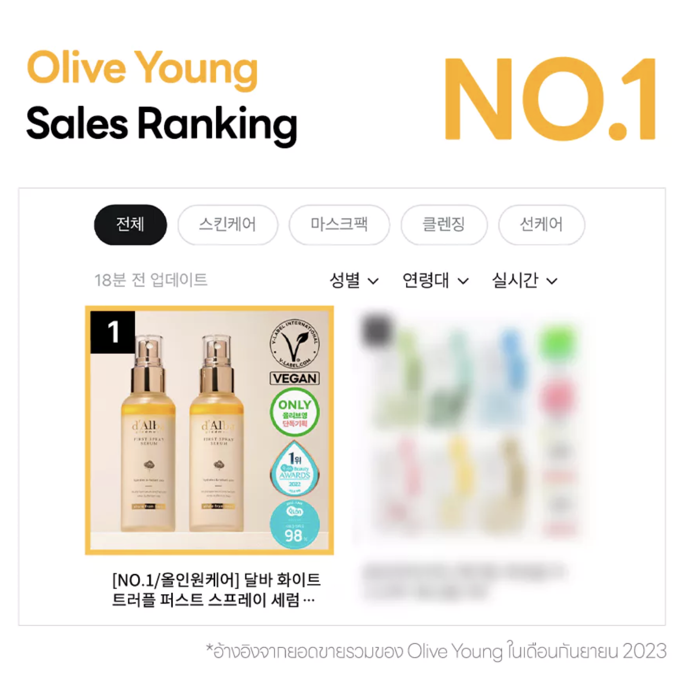 ด้วยยอดขายกว่า 63 ล้านขวดทั่วโลก และรีวิวมากกว่า 100,000 รีวิวบนเว็บไซต์ทางการของ d'Alba ทำให้ชื่อของเฟิร์สสเปรย์เซรั่มตัวนี้ถูกจัดอยู่ในลิสต์ไอเท็มผิวโกลว์ที่หลายคนต้องรู้จัก