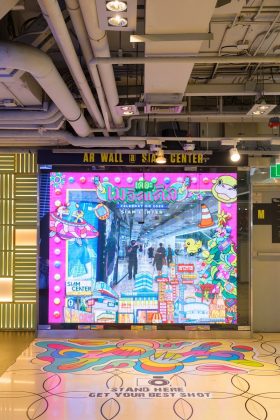 Interactive art spaces and photo-friendly walls across the mall.