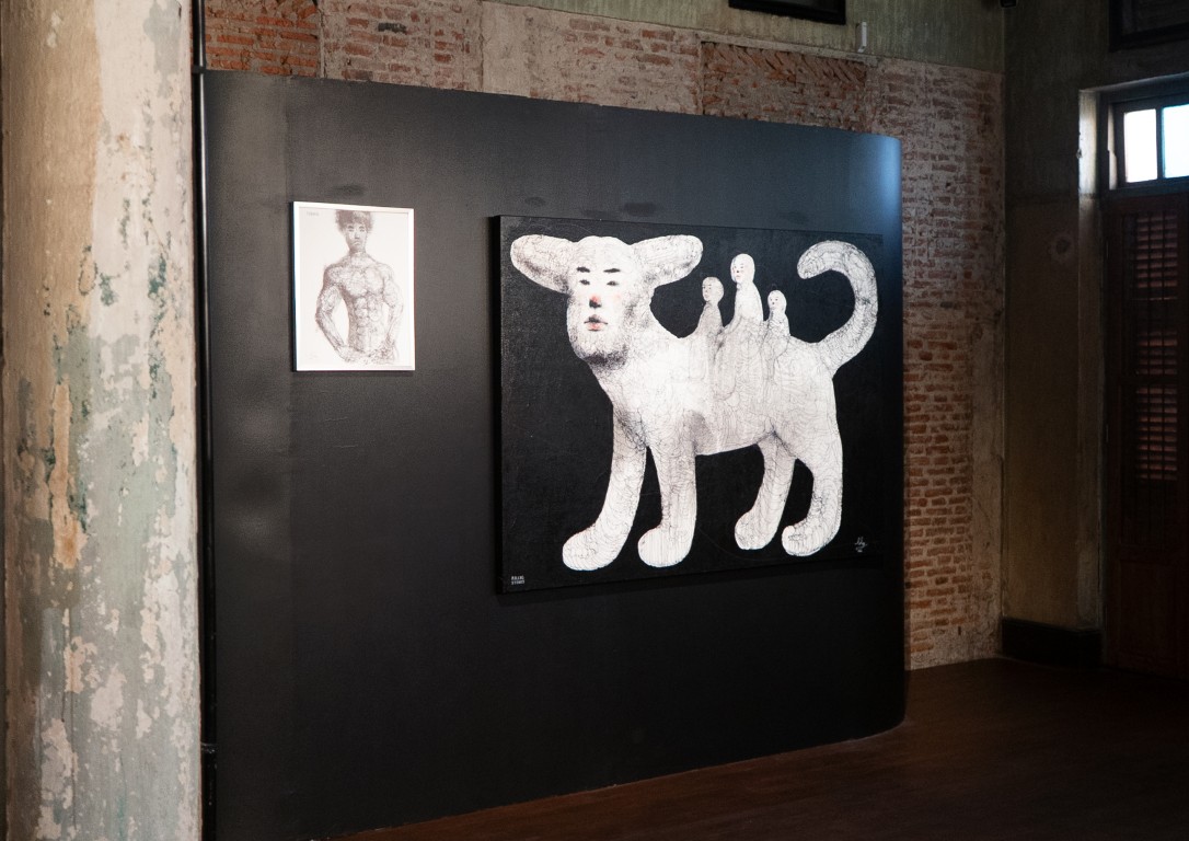 ความซับซ้อนเหล่านี้ถูกถ่ายทอดผ่านลายเส้นที่หนาแน่นจนไม่ใช่เพียงโครงร่าง แต่กลายเป็น “เนื้อสาร” ที่รวมตัวเป็นมวล แสง เงา และจังหวะ เปรียบเหมือนความหนาแน่นของโลกชีวภาพ สังคม และการเมืองร่วมสมัย