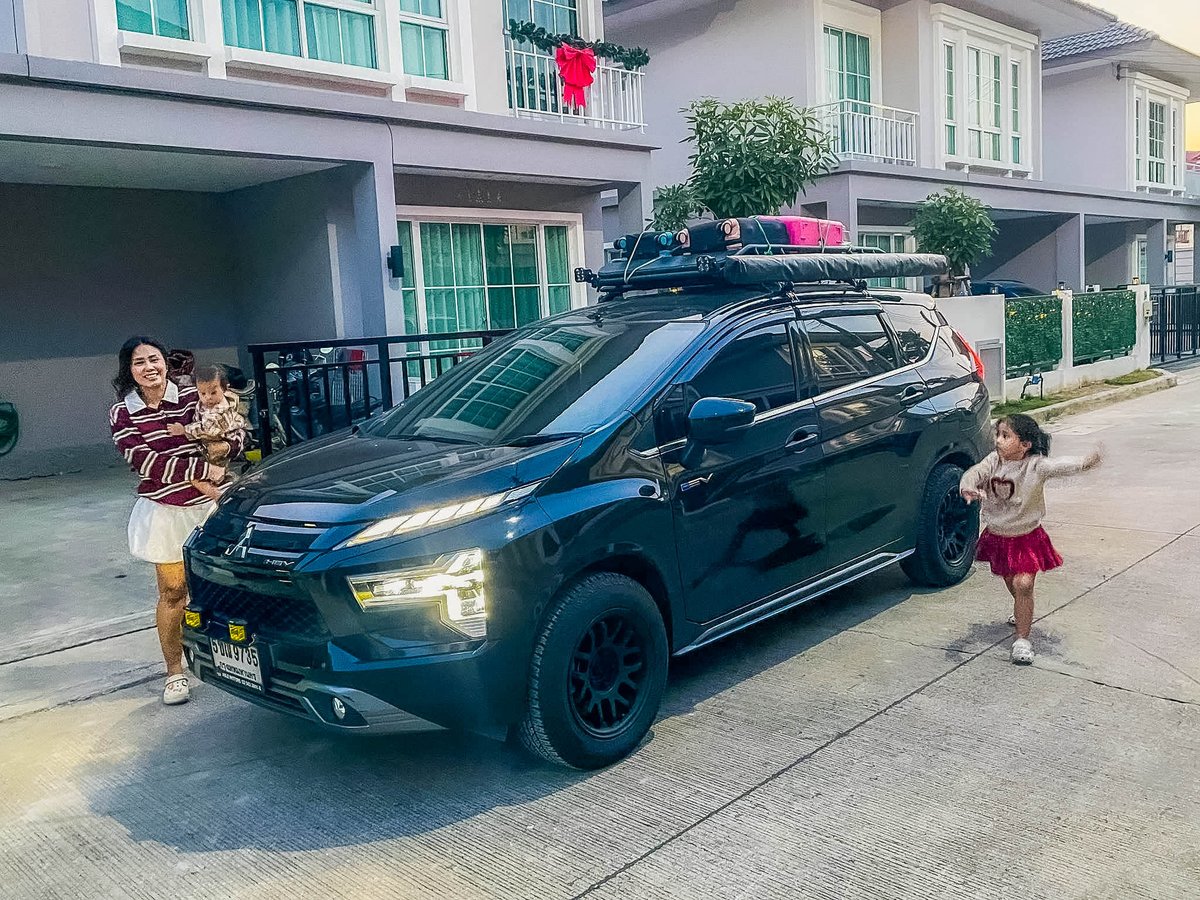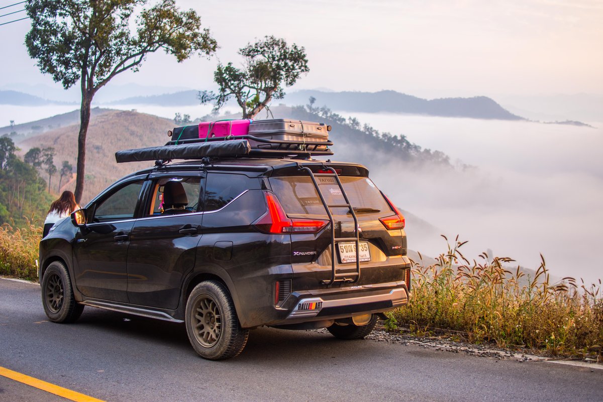 รถครอบครัวขนสัมภาระเต็มหลังคา