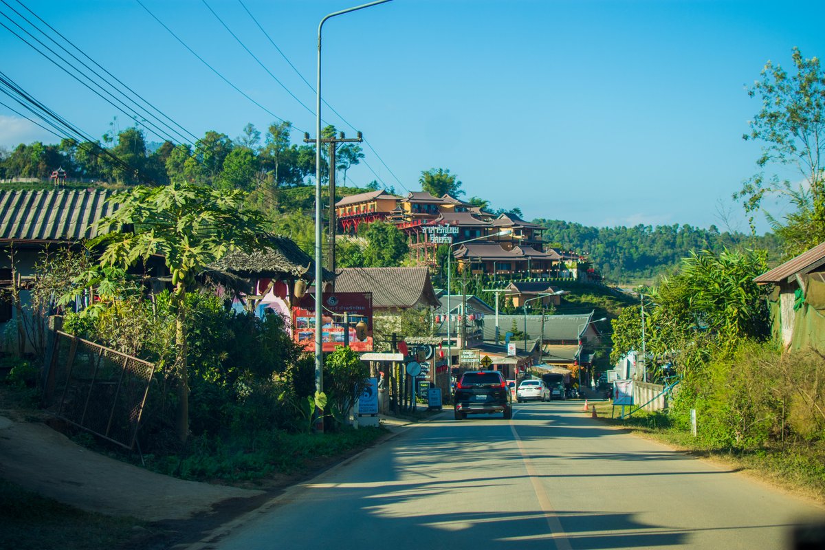 จากปางอุ๋งขับต่อไปไม่นานก็เข้าสู่ บ้านรักไทย หมู่บ้านเล็กๆท่ามกลางภูเขาและอ่างเก็บน้ำ เส้นทางคดเคี้ยวและมีชันบ้างประปราย แต่ค่อยๆไต่ขึ้นมาก็ถึงแบบไม่เครียด รถ Eco car ก็ขึ้นกันได้เพียบ