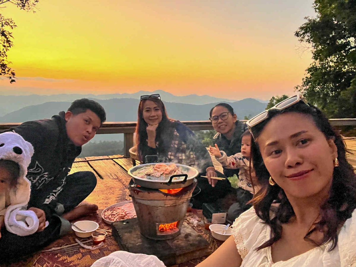มื้อเย็นแน่นอนว่าต้องเป็น หมูกระทะร้อนๆ อีกแล้ว เข้ากับอากาศเย็นและวิวภูเขาแบบมากๆ