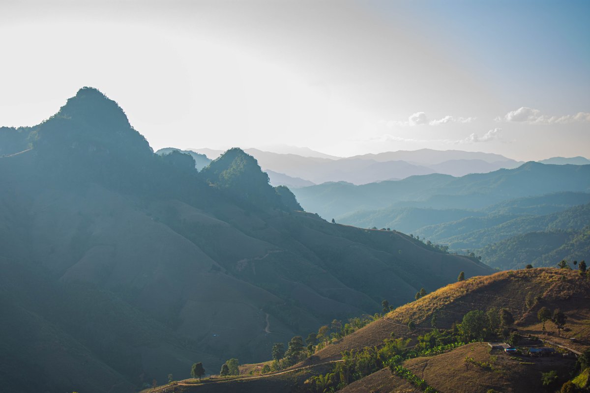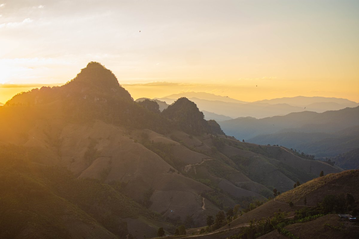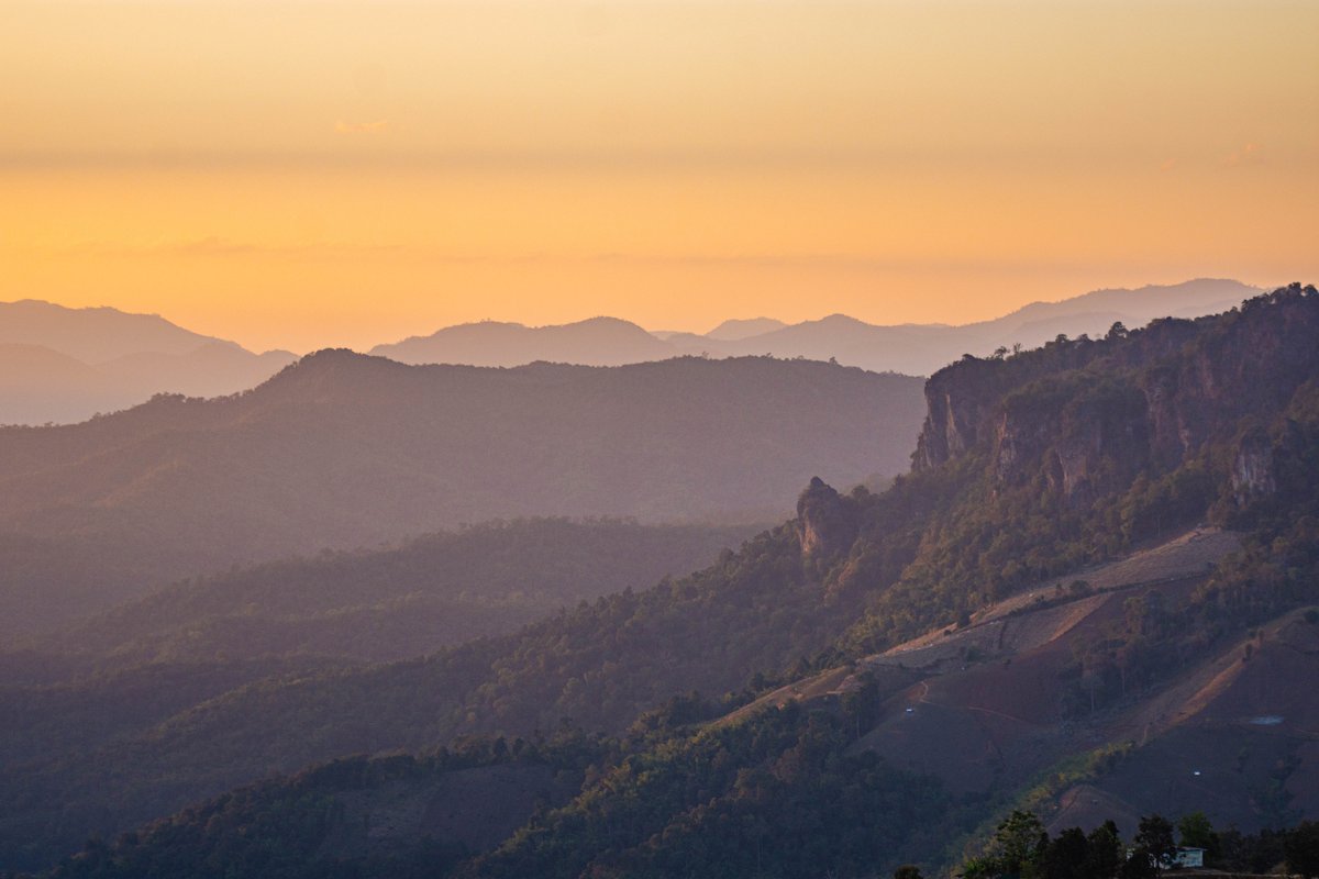 ที่นี่คือสวรรค์คนชอบภูเขาเป็นชั้นๆ ทอดตัวไกลสุดสายตา พอแสงเย็นเริ่มมา ไล่โทนฟ้าจนถึงส้มอมชมพู บอกเลยว่าคุ้มทุกโค้งที่ขับเข้ามา