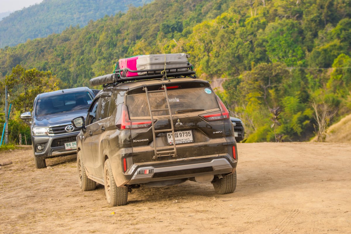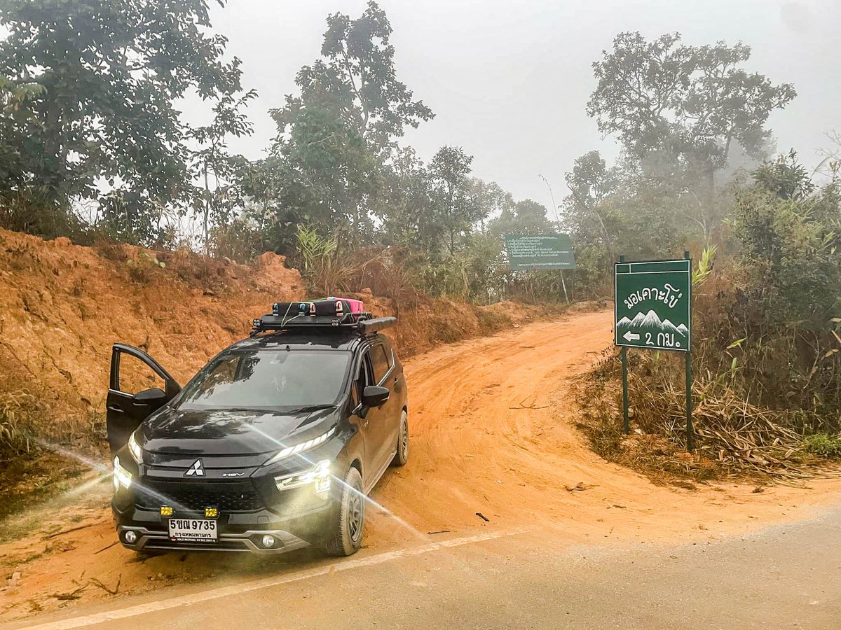 ทางขึ้นเป็นดินแดงราว 2 กม. ออฟโรดเบาๆ หน้าแล้งรถขับสองยกสูงหรือ SUV อย่าง Xpander ก็พอไปได้ แต่ช่วงนี้เขาจัดระบบให้รถนักท่องเที่ยวจอดด้านล่าง แล้วใช้รถชุมชนรับ-ส่งขึ้นไปแทน เพื่อจัดระเบียบที่จอดด้านบน