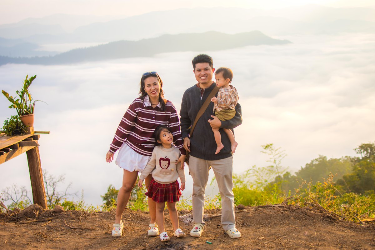 ก่อนลงจากมอเดาะโข๋ก็จัดรูปครอบครัว รูปเดี่ยวรูปหมู่กันเต็มเมม เด็กๆเริ่มอินกับการเที่ยวภูเขาและหมอกแล้ว