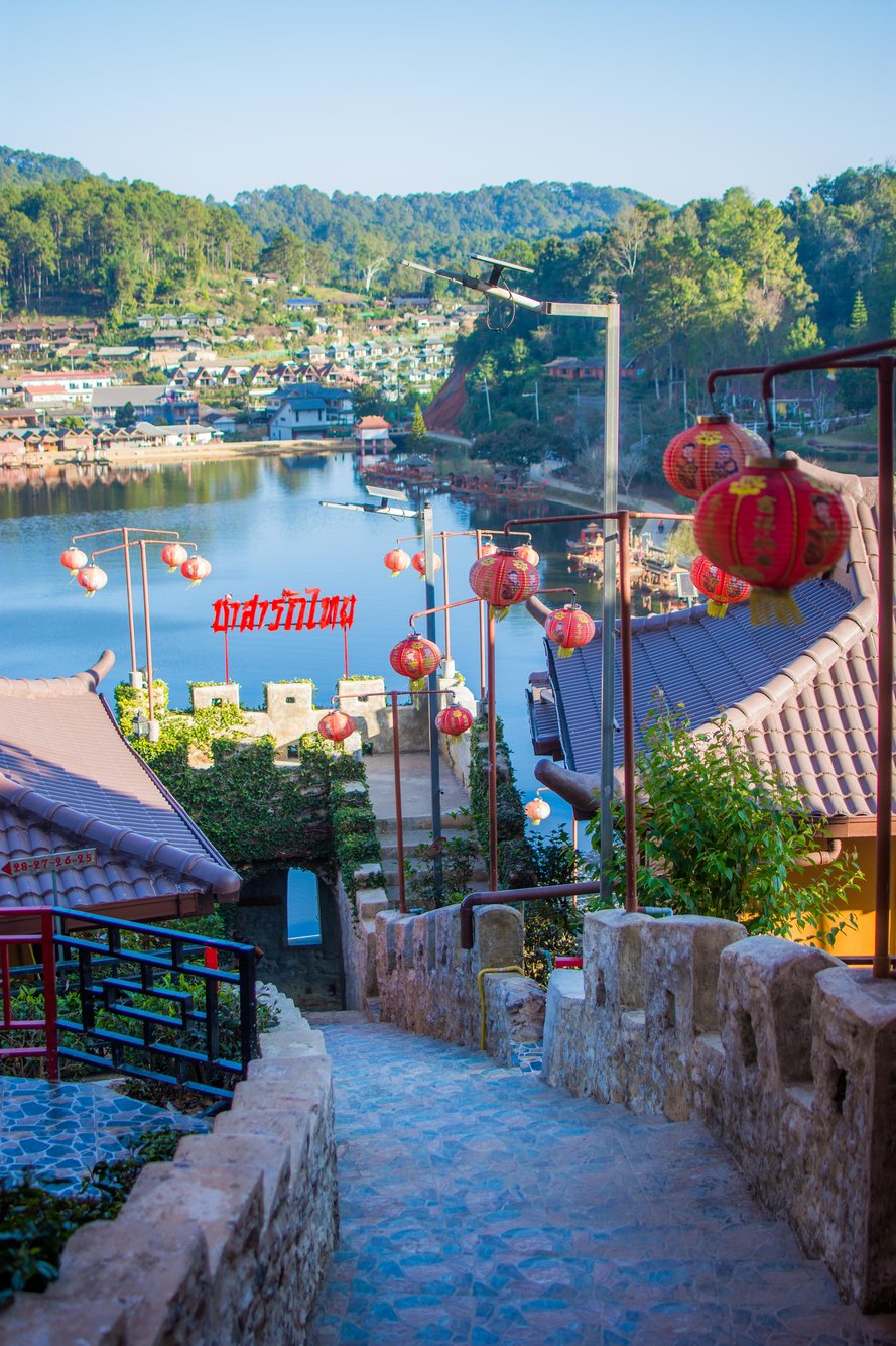เลือกพักที่ ชาสารักไทย จุดเด่นคือวิวสูง มองเห็นอ่างเก็บน้ำและหมู่บ้านแบบเต็มตา แต่ต้องแลกกับการเดินขึ้นลงบันได ที่ถ้าลืมของทีคือไม่อยากย้อนกลับไปเอาเลย