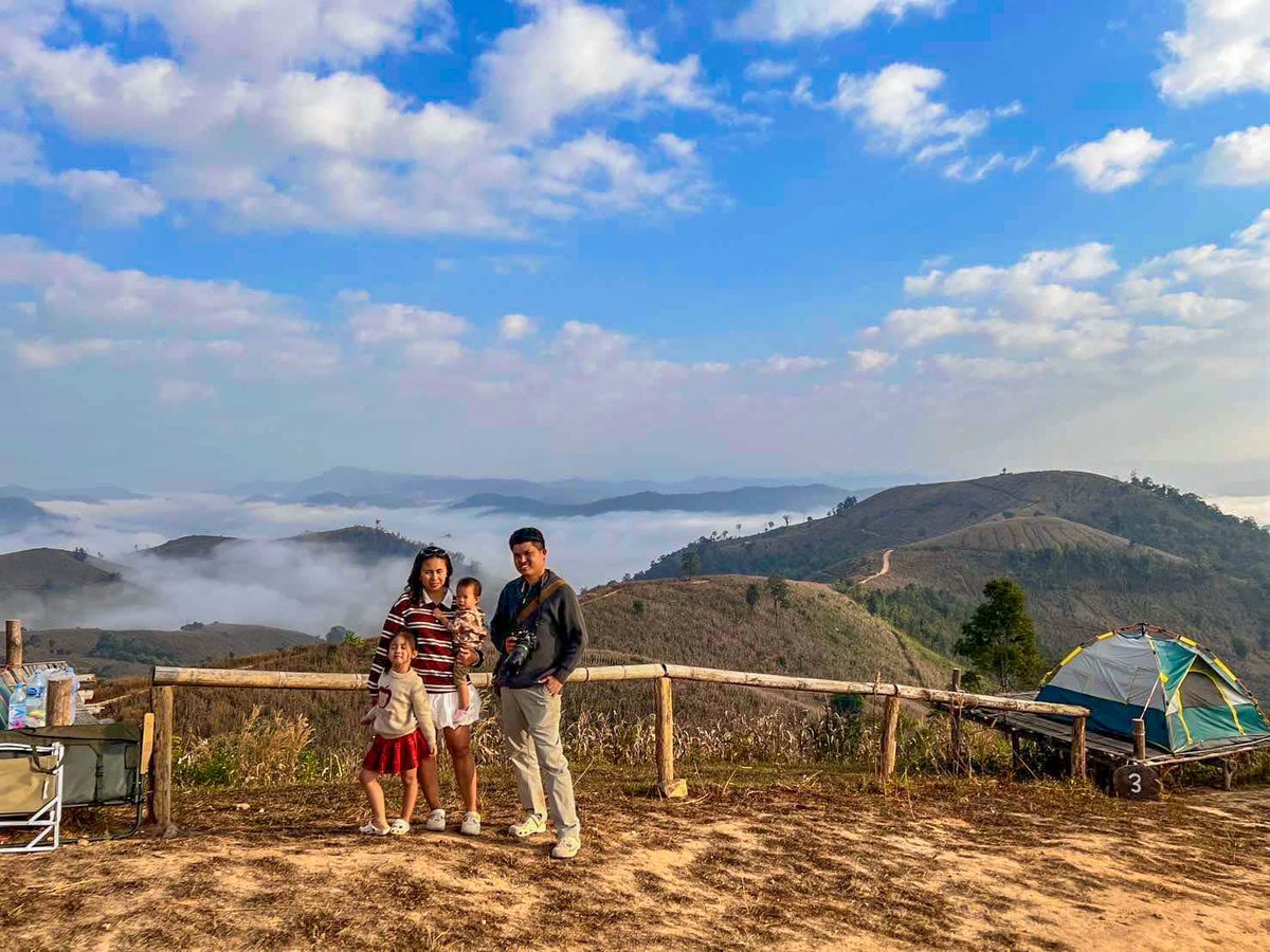 ลานด้านบนเป็นพื้นที่กางเต็นท์ไม่ใหญ่มากแต่ได้เปรียบเรื่องวิวเต็มๆ ทั้งหุบเขาและทะเลหมอก เรียกว่า