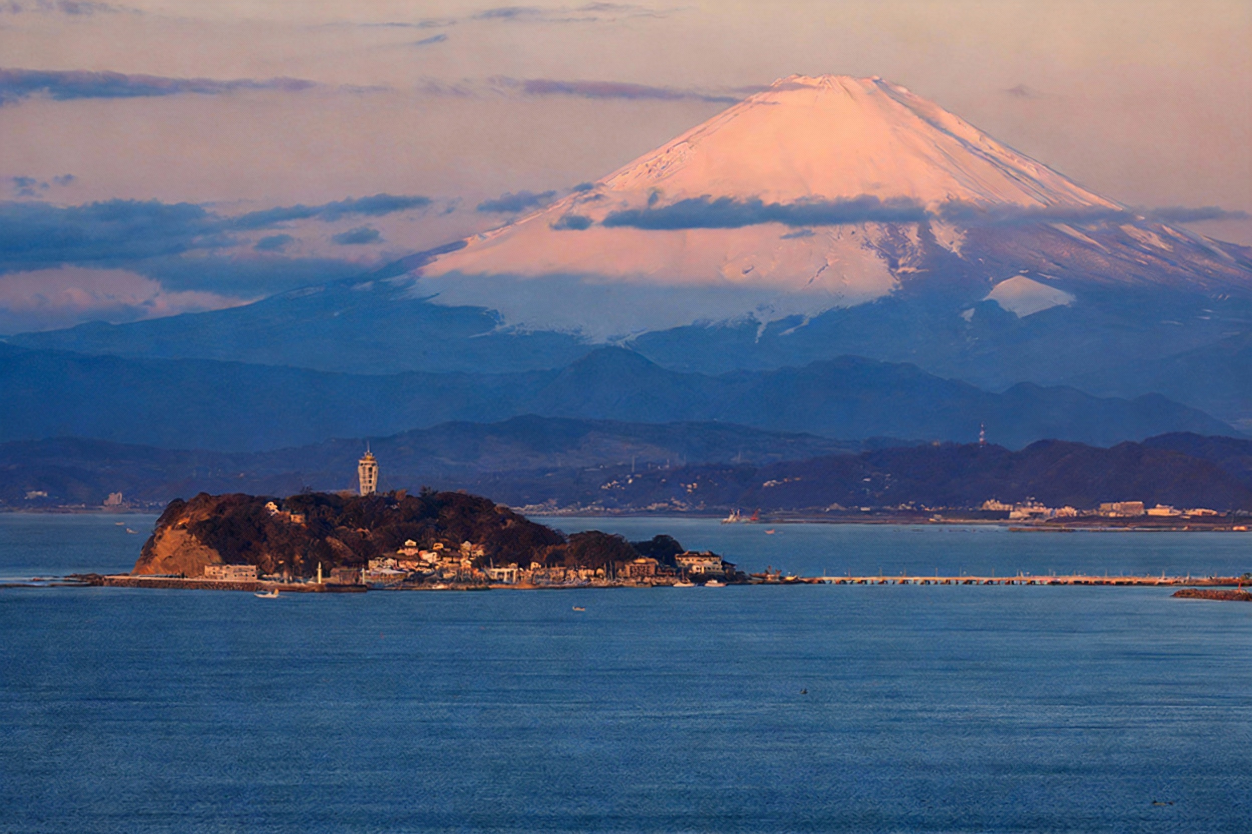 เพียงนั่งรถไฟออกจากเมืองใหญ่ไม่กี่สถานี ก็ได้มาเจอทะเลลมเย็น ๆ วิวภูเขาไฟฟูจิ ของกินทะเลสดใหม่ และศาลเจ้าศักดิ์สิทธิ์ในเกาะเล็ก ๆ ที่เดินได้ทั่วแบบไม่เหนื่อยเกินไป