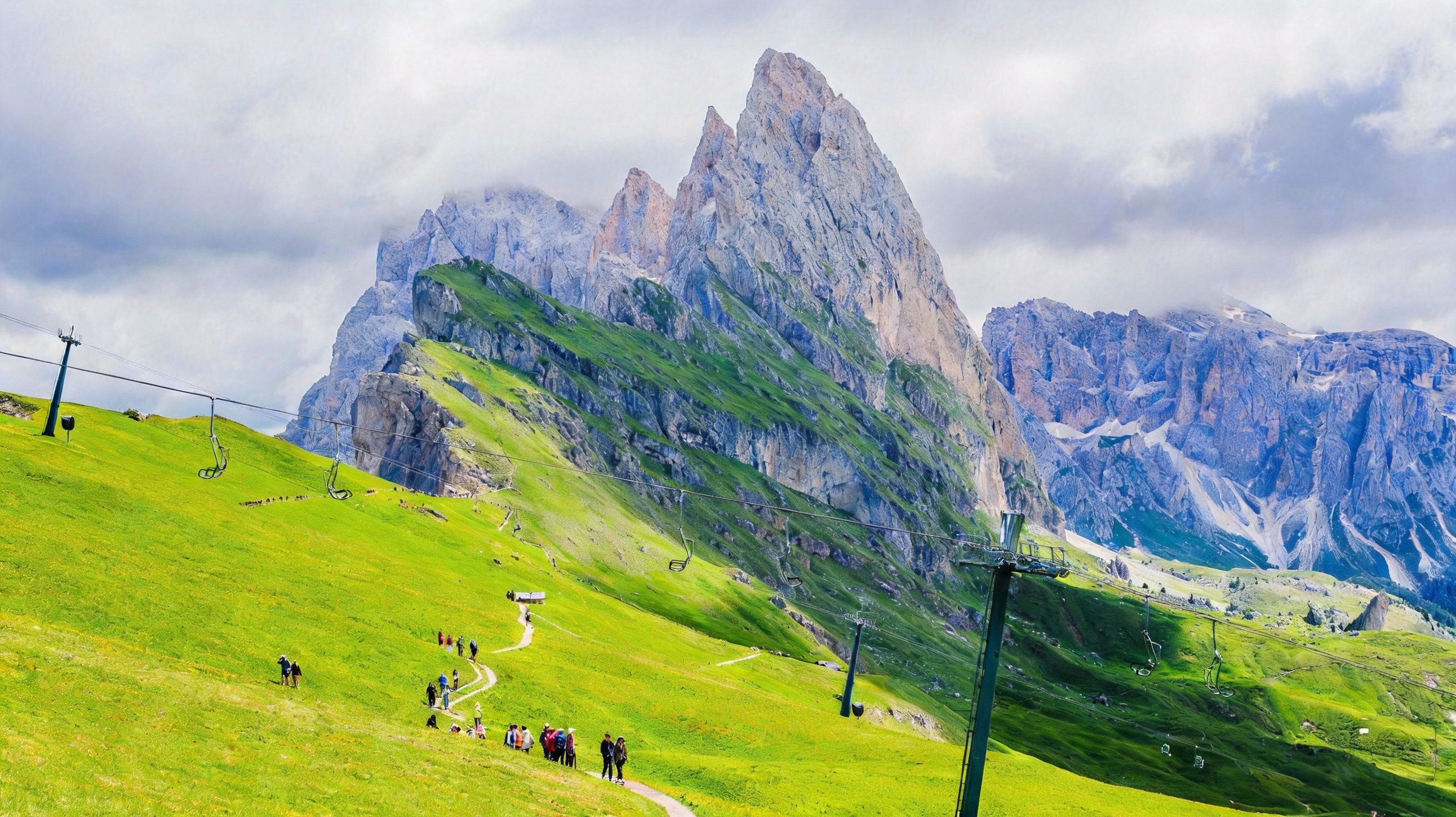 ไฮไลต์ของ Seceda คือแนวหน้าผาหินที่สูงชันและยอดเขาทรงแหลมเรียงตัวกันอย่างดุดัน แต่กลับสวยราวฉากในหนังแฟนตาซี เมื่อมองจากมุมสูงจะเห็นแนวเขาพุ่งเฉียงขึ้นชนท้องฟ้าแบบมีมิติสุดๆ