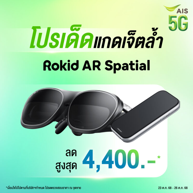 งานนี้ไม่ได้มีแค่มือถือ เพราะเอไอเอสหอบเอา แว่นตาอัจฉริยะ AR รุ่นใหม่ล่าสุด “Rokid AR Spatial” มาให้ลองกันในงานแบบจุก ๆ