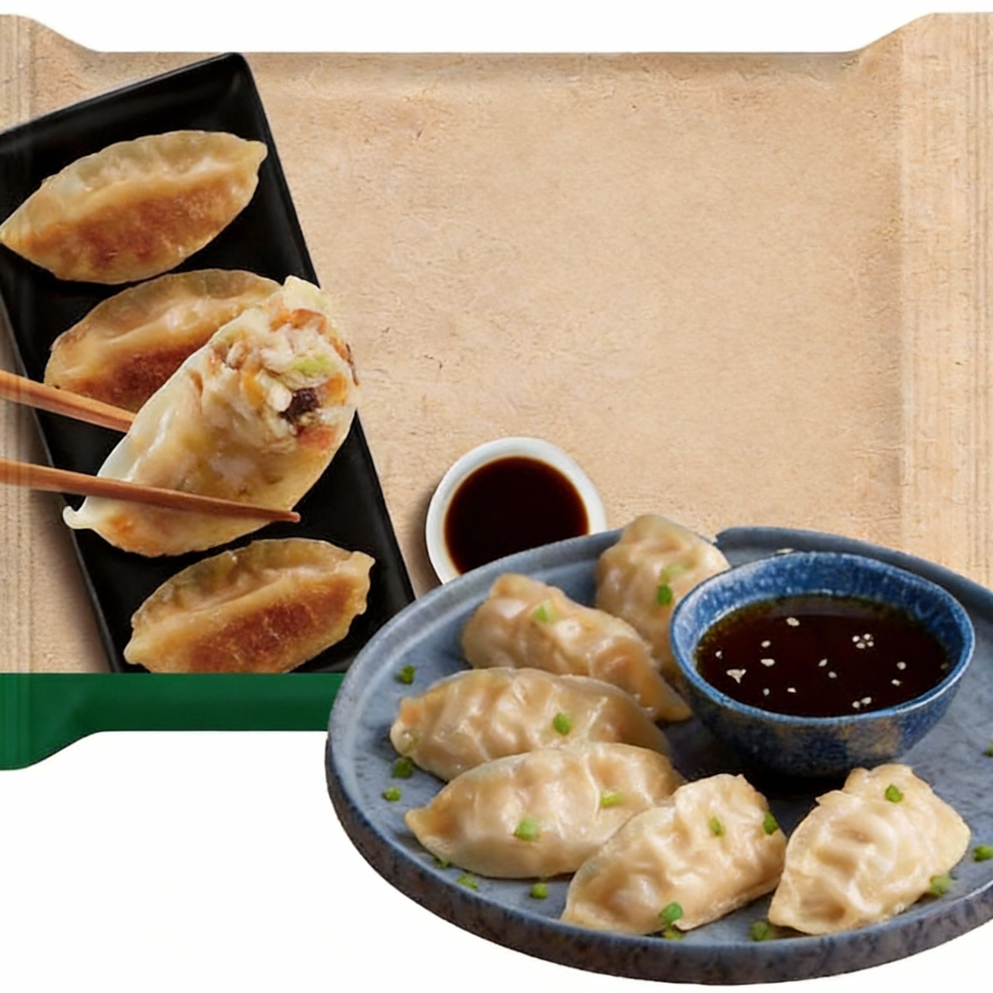 เกี๊ยวซ่าสไตล์เจ ไส้จากโปรตีนพืช เคี้ยวเพลิน ได้ฟีลเหมือนเกี๊ยวซ่าธรรมดาแต่สบายใจเรื่องเนื้อสัตว์ จะเอาไปทอด อบ หรือเวฟก็ได้