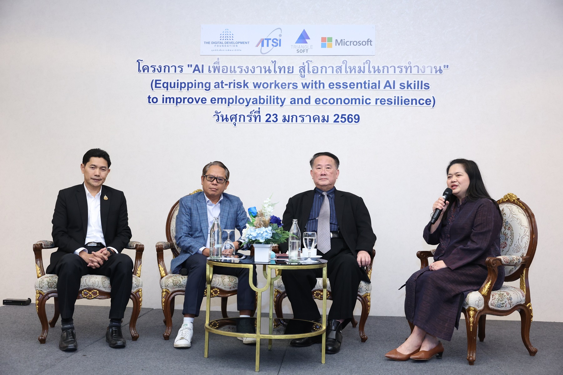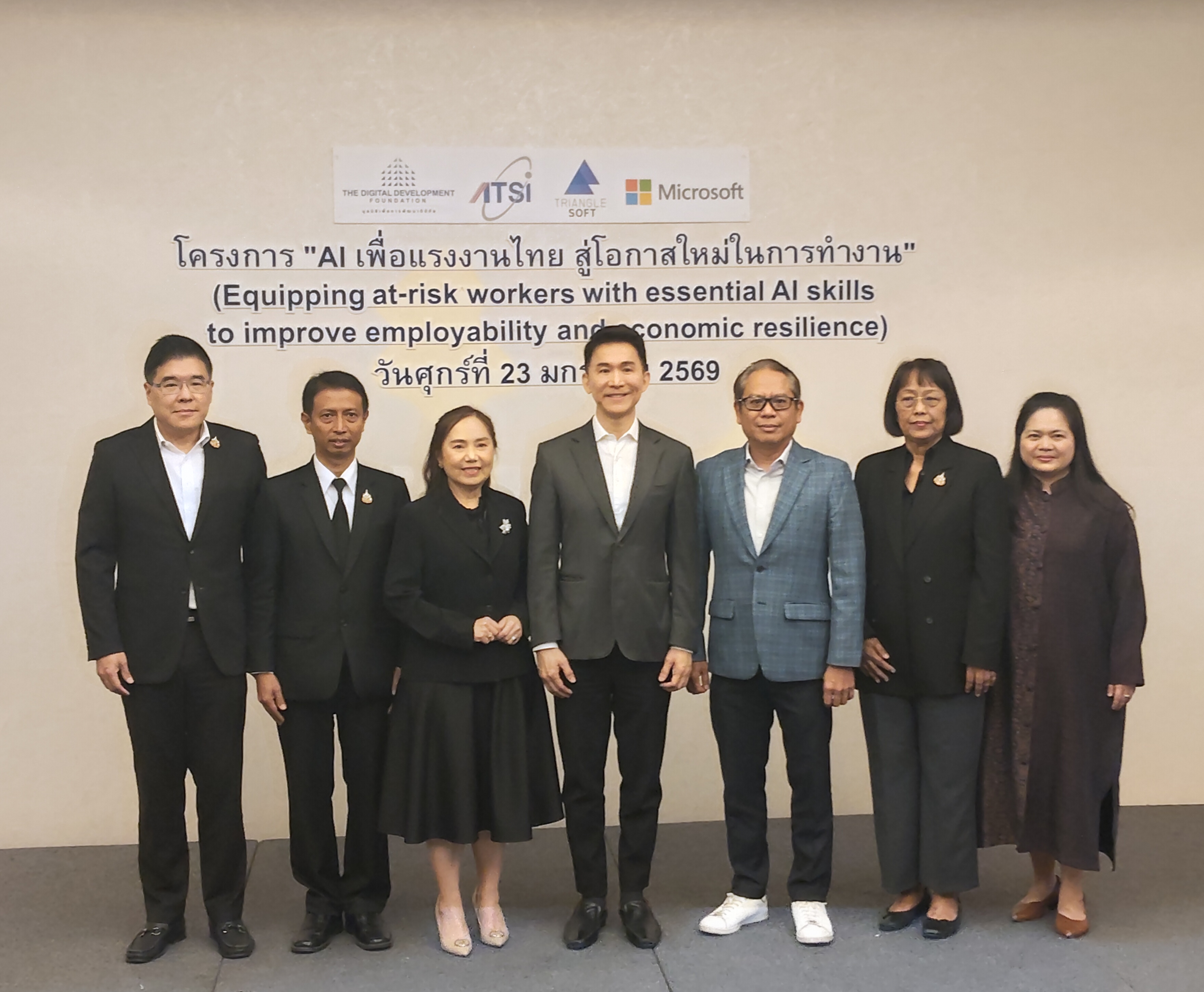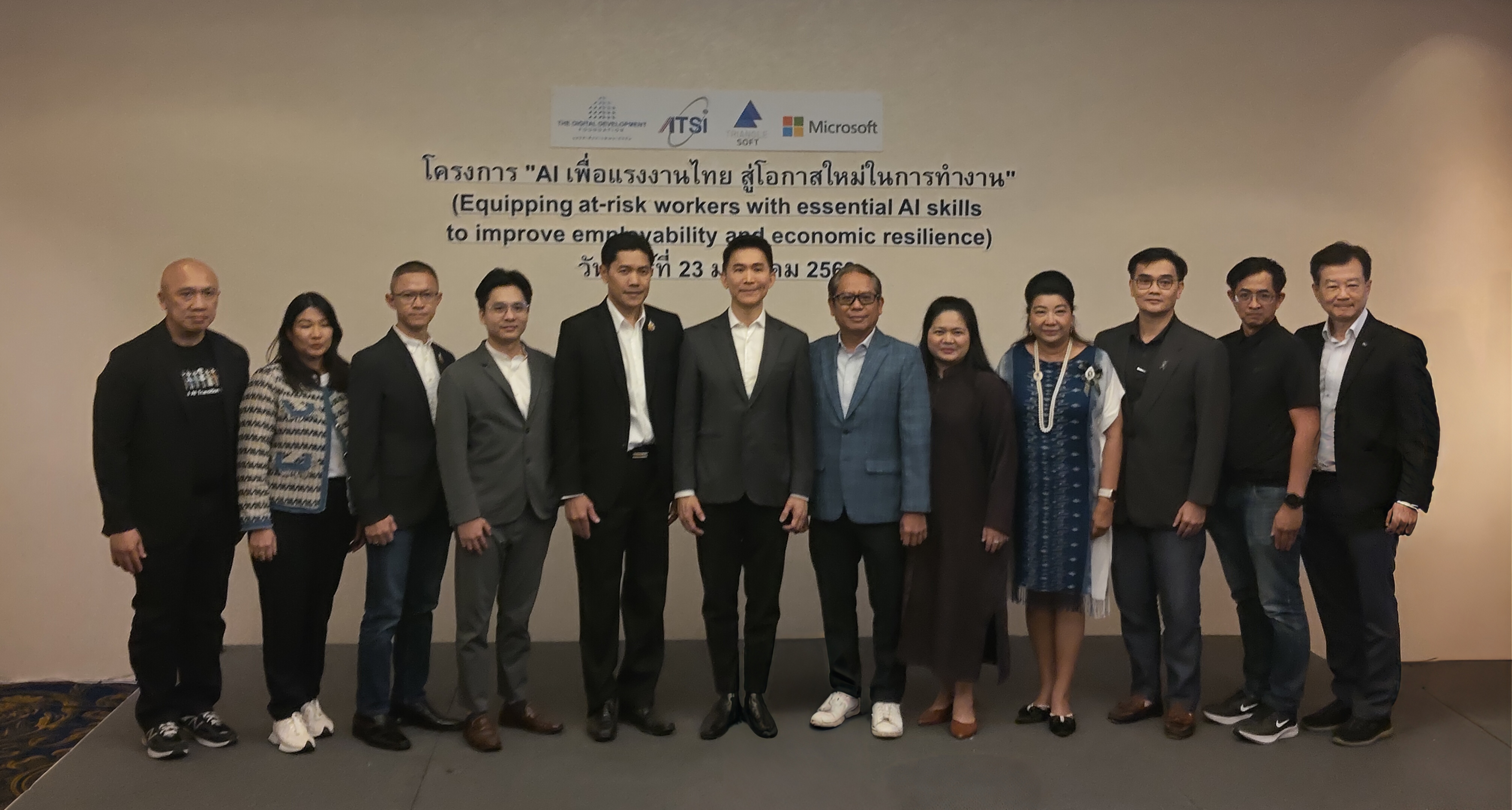 มูลนิธิเพื่อการพัฒนาดิจิทัล (DDF), สมาคมอุตสาหกรรมซอฟต์แวร์ไทย (ATSI) และบริษัท ไทรแองเกิ้ลซอฟท์ จำกัด (TGS) ผนึกกำลังกับไมโครซอฟท์ (ประเทศไทย) และพันธมิตรจากทั้งภาครัฐและเอกชน เปิดตัวโครงการ “AI เพื่อแรงงานไทย สู่โอกาสใหม่ในการทำงาน” อย่างเป็นทางการ