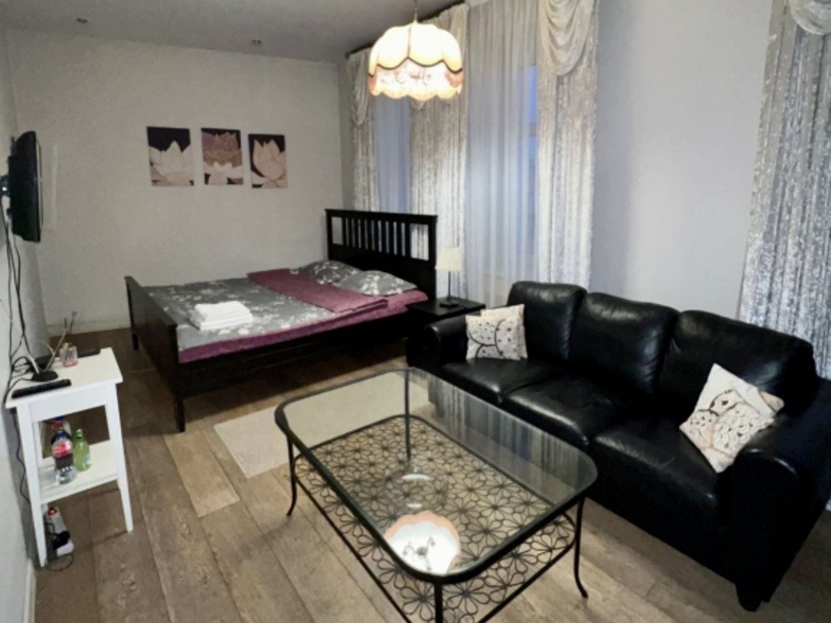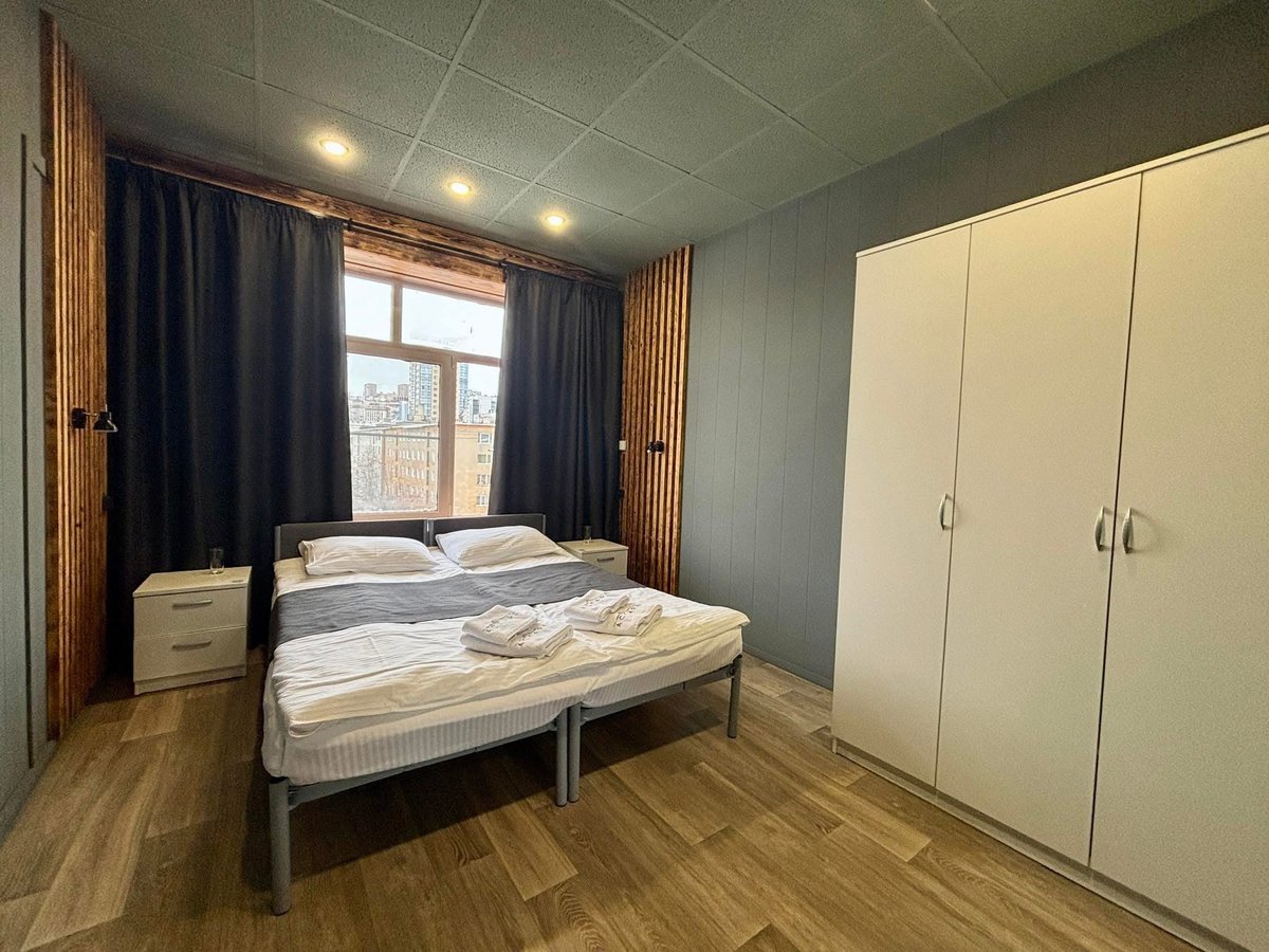 เป็นอพาร์ตเมนต์ชั้น 4 (ไม่มีลิฟต์) มีหลายแบบห้อง เราได้ห้องใหญ่ในราคาประมาณ 2,000 รูเบิล/คืน