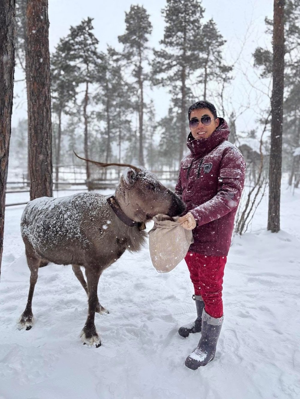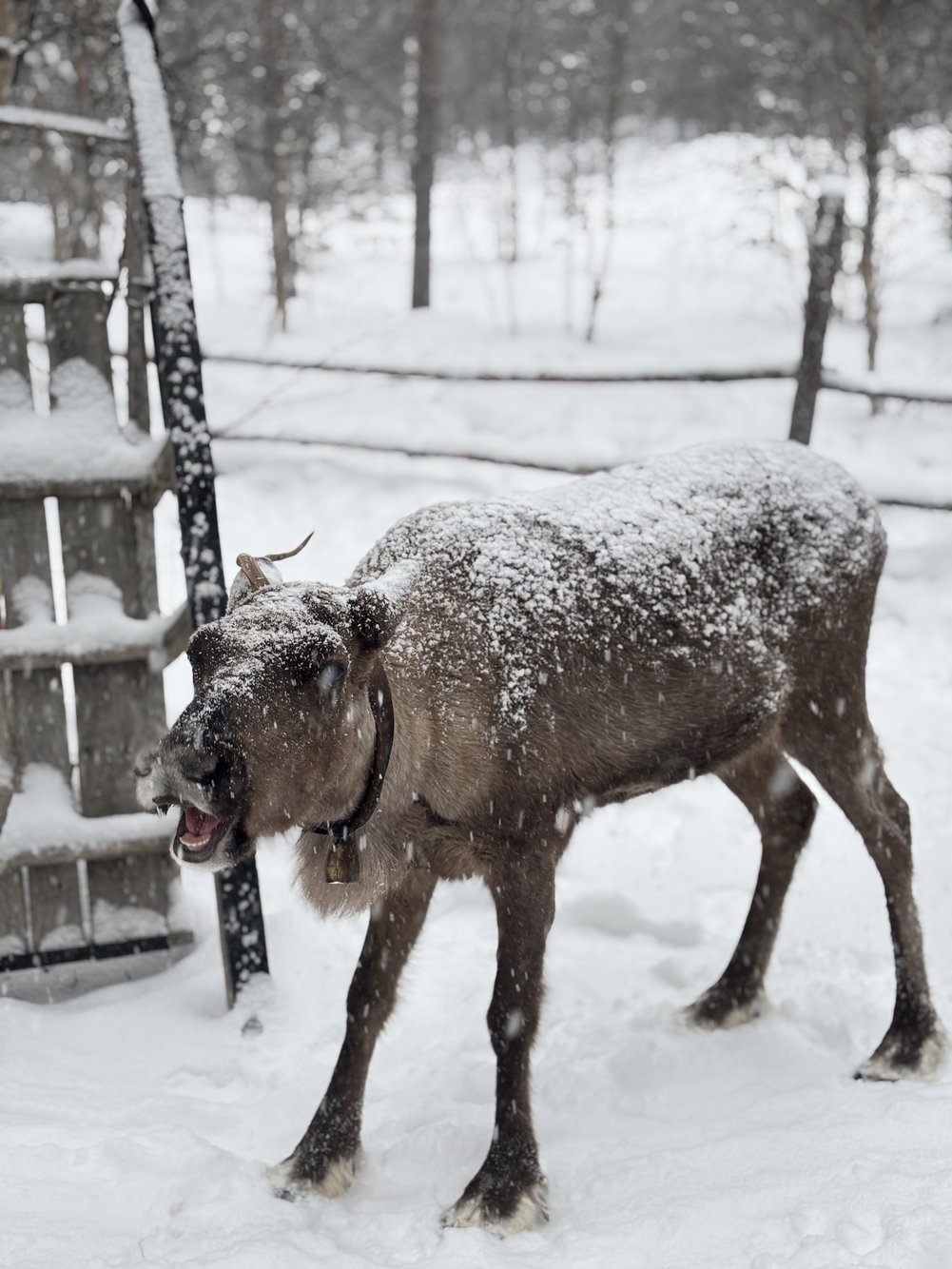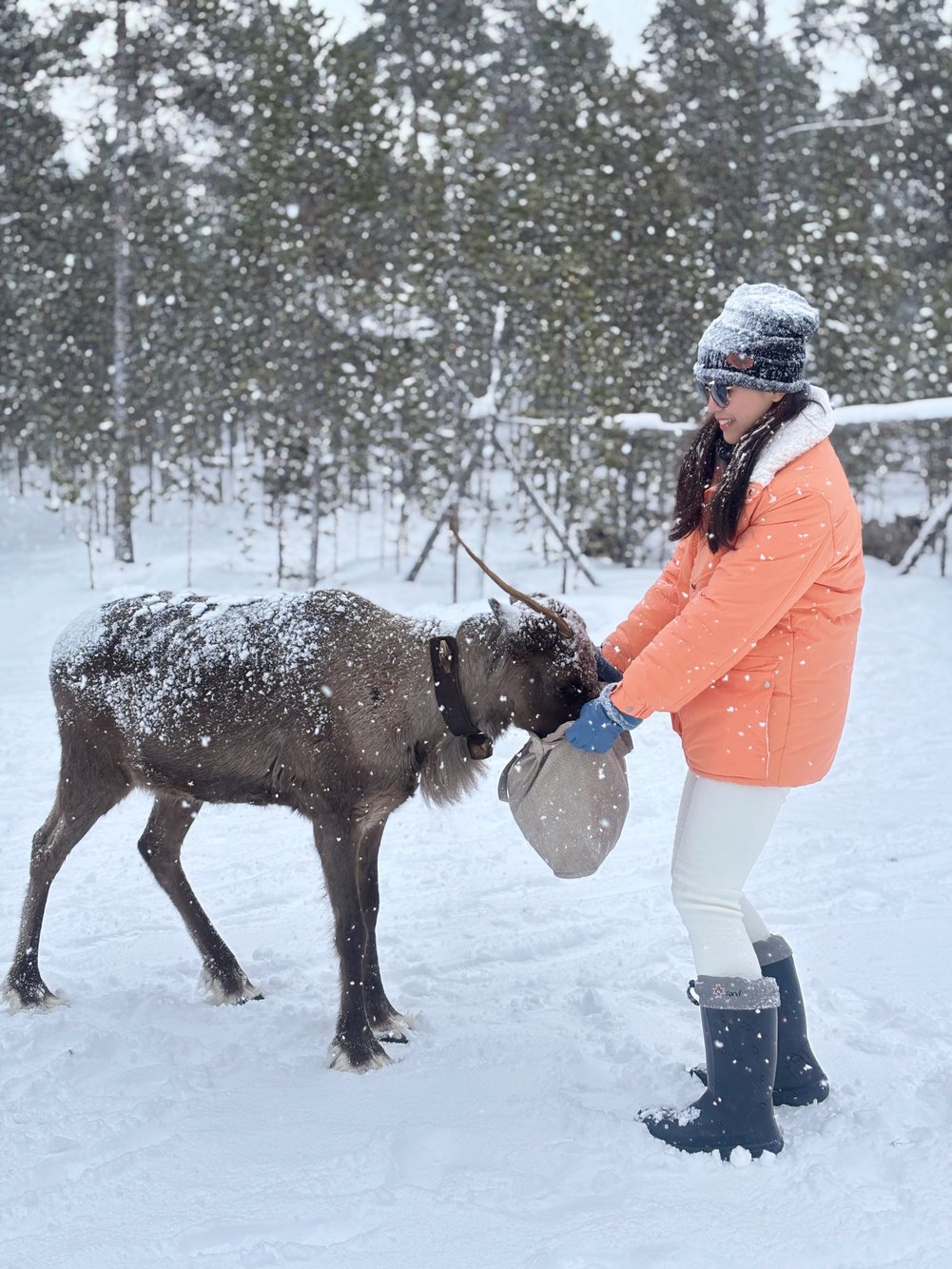 จากหมาก็มาถึงคิว กวางเรนเดียร์ ตัวจริงเสียงจริงหลังจากเคยเห็นแค่ในโปสการ์ดคู่ซานต้า หิมะเริ่มตกหนักขึ้น แต่กลับเพิ่มความโรแมนติกไปอีกขั้น