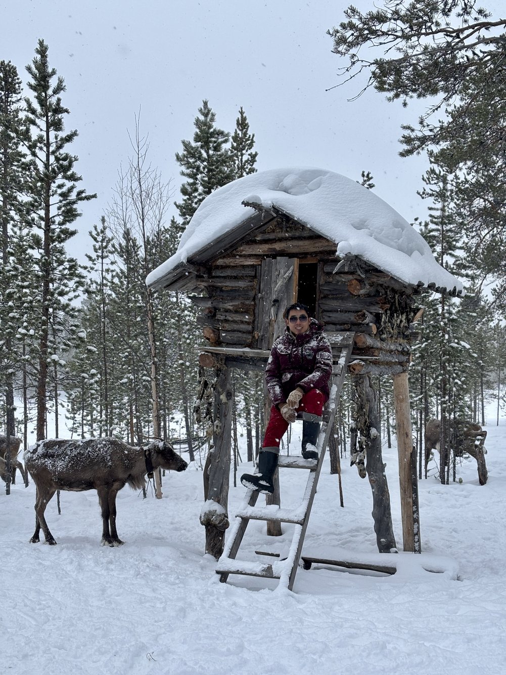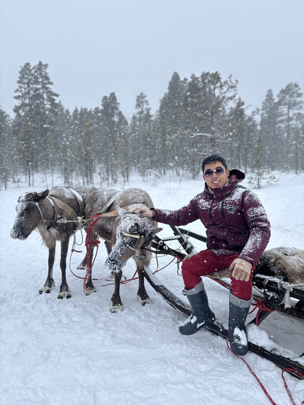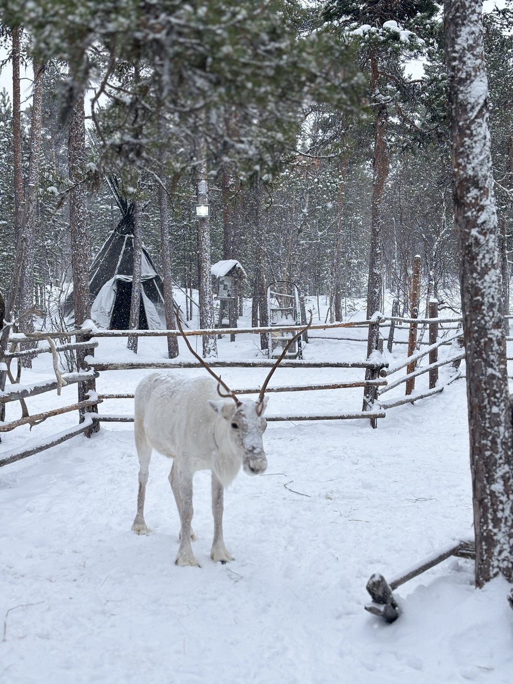 จากหมาก็มาถึงคิว กวางเรนเดียร์ ตัวจริงเสียงจริงหลังจากเคยเห็นแค่ในโปสการ์ดคู่ซานต้า หิมะเริ่มตกหนักขึ้น แต่กลับเพิ่มความโรแมนติกไปอีกขั้น