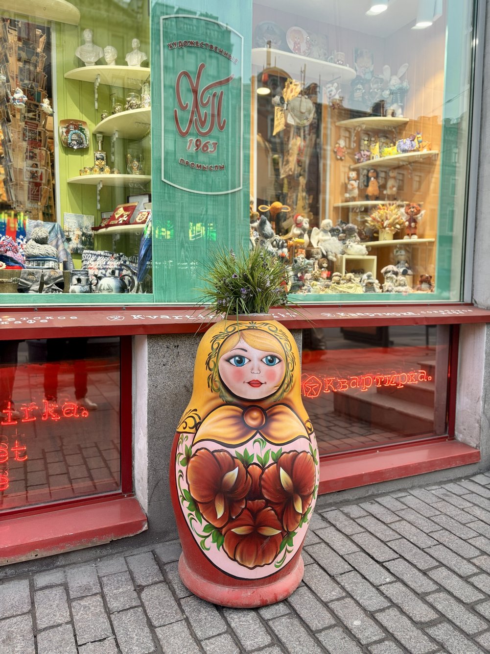 ร้านค้าแถวนี้มักตกแต่งด้วยลายตุ๊กตาแม่ลูกดกเต็มไปหมด ดูแล้วรู้เลยว่าอยู่รัสเซีย