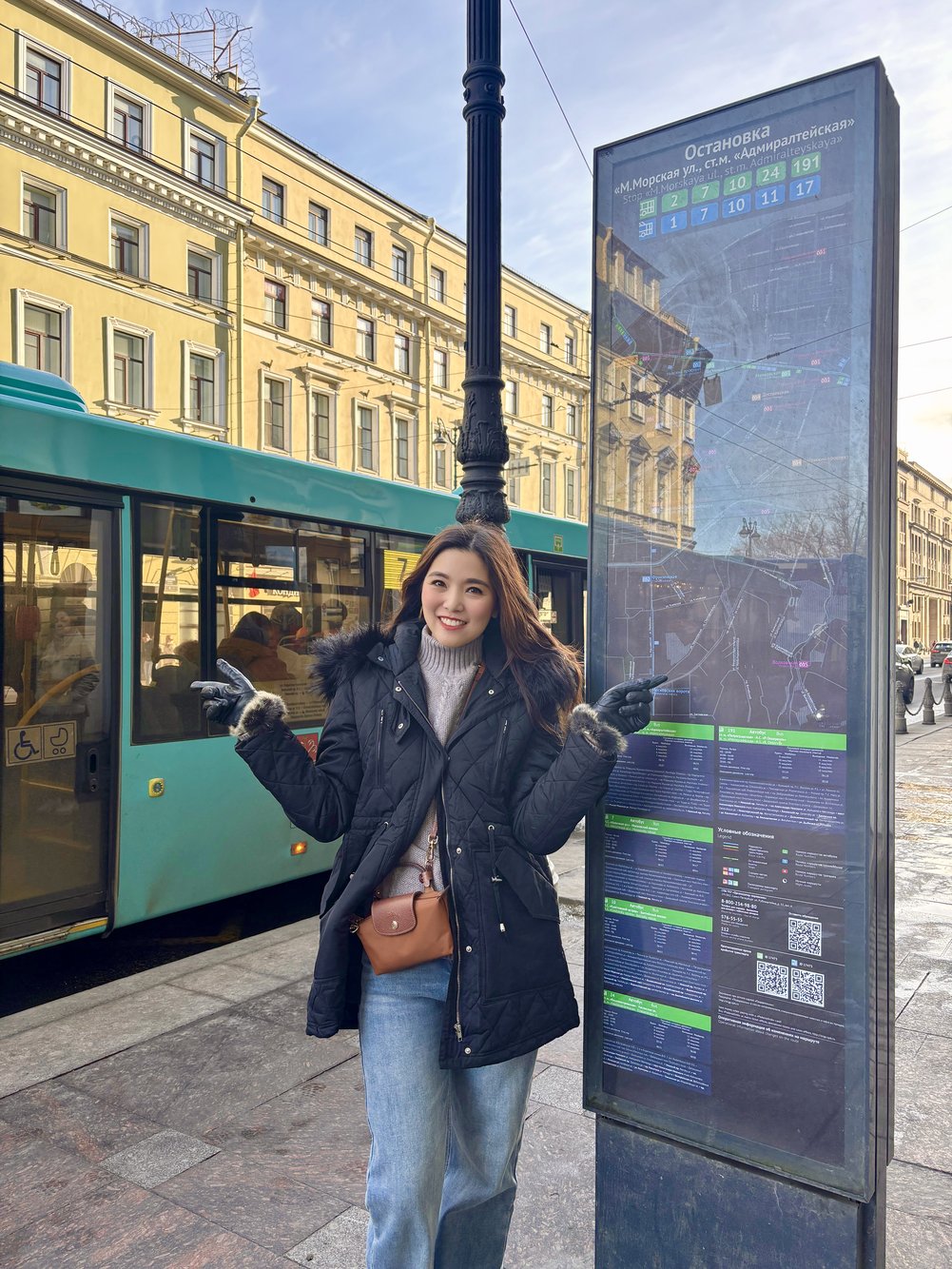 วันนี้ลองเปลี่ยนจาก Metro มาใช้ รถเมล์ในเมือง ราคาคนละ 75 รูเบิล ป้ายอยู่หน้าอพาร์ตเมนต์เลย กระจกบานใหญ่ นั่งดูวิวเพลินมาก