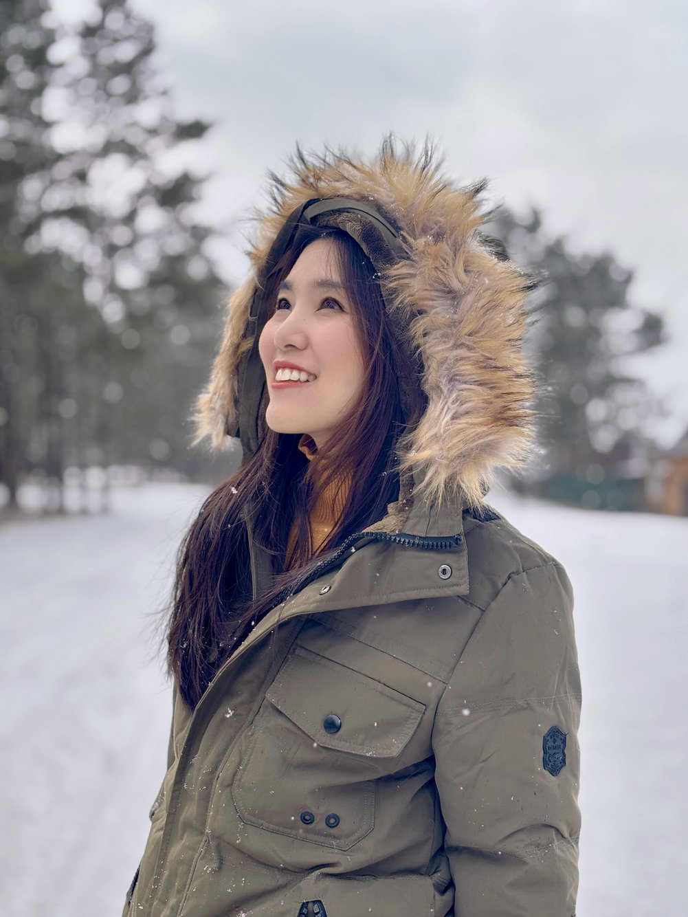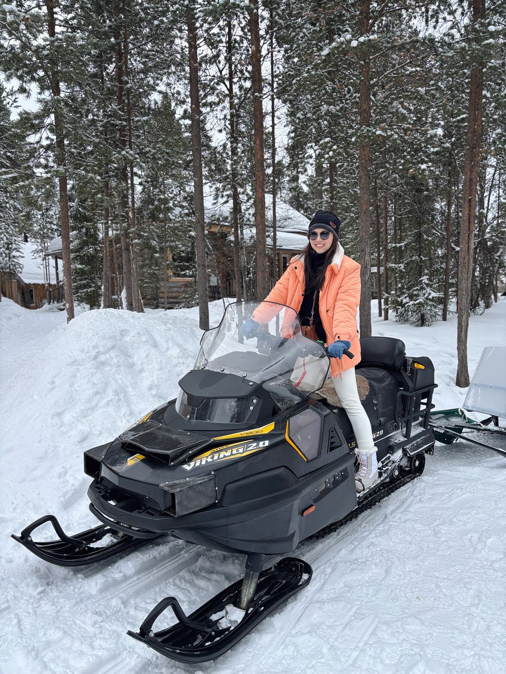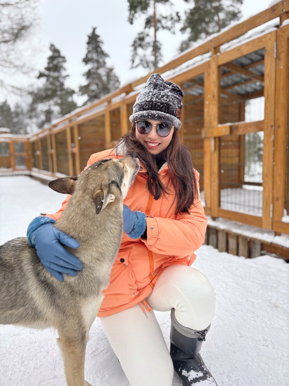 วิวสองข้างระหว่างลากเลื่อนคือสวยจนหยุดหายใจ เมื่อถึงฟาร์มก็ได้เวลาเดินเล่นถ่ายรูปกับฉากหิมะหนากับบ้านไม้แบบชนเผ่า