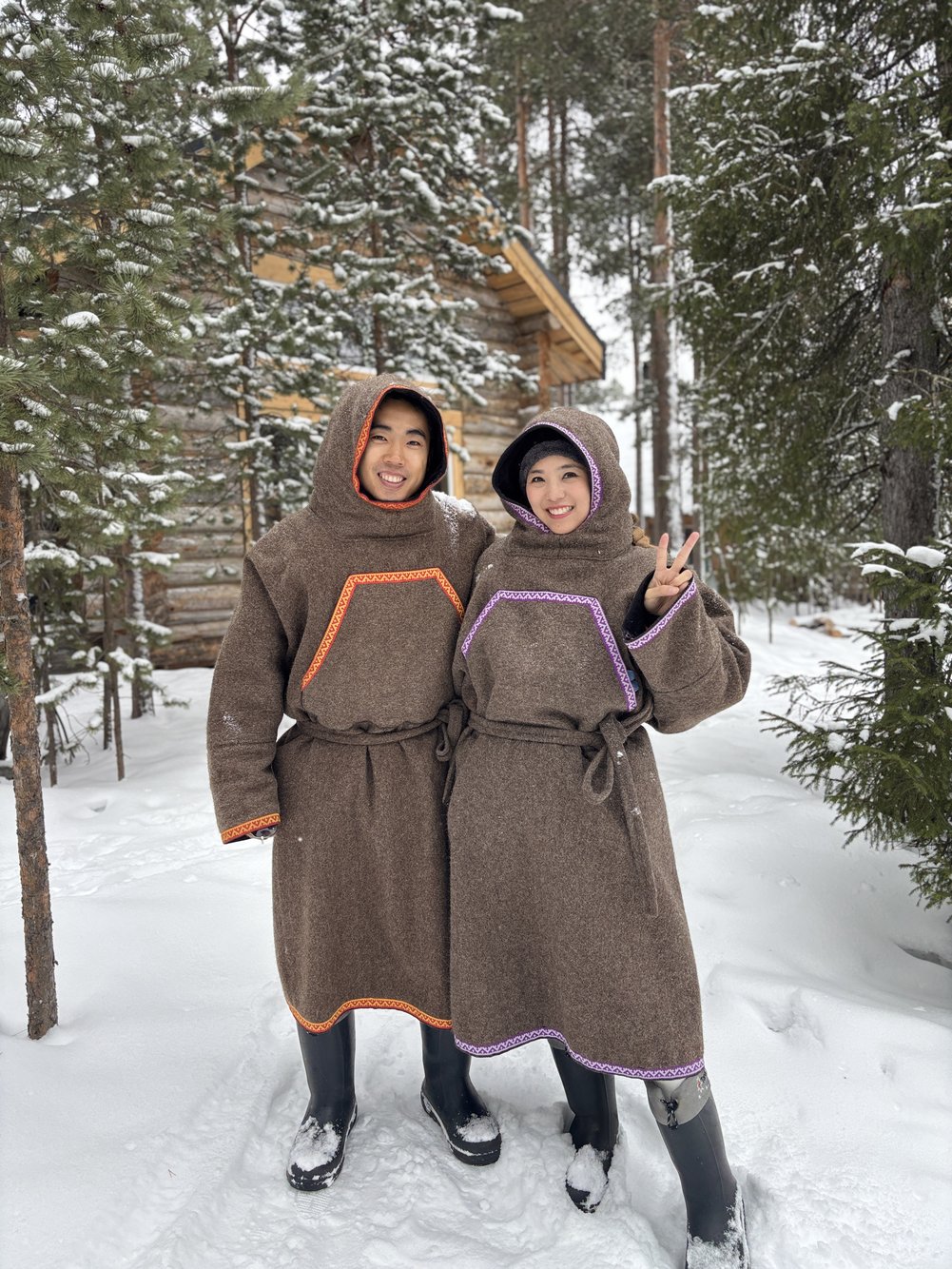 ทางฟาร์มจะให้ใส่ชุดประจำเผ่า Sami ทับเสื้อโค้ทตัวหนา (ใครสะพายกระเป๋า crossbody ก็ใส่ทับไปทั้งแบบนั้น) ทำให้ดูเหมือนเทเลทับบี้ตัวน้อยๆ แต่รองเท้าเผ่านี่คือที่สุด อุ่นแบบลืมรองเท้าบู๊ตตัวเองไปเลย