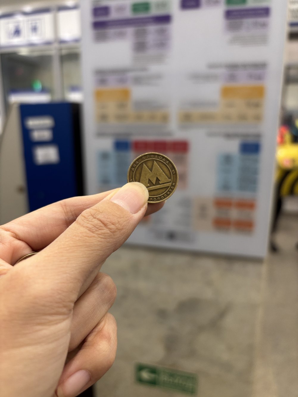 จาก Metro ก็ไปต่อยังที่พักได้เลย ตั๋ว Metro แบบเที่ยวเดียวราคา 90 รูเบิล ได้เป็นโทเคนเหรียญกลมๆ