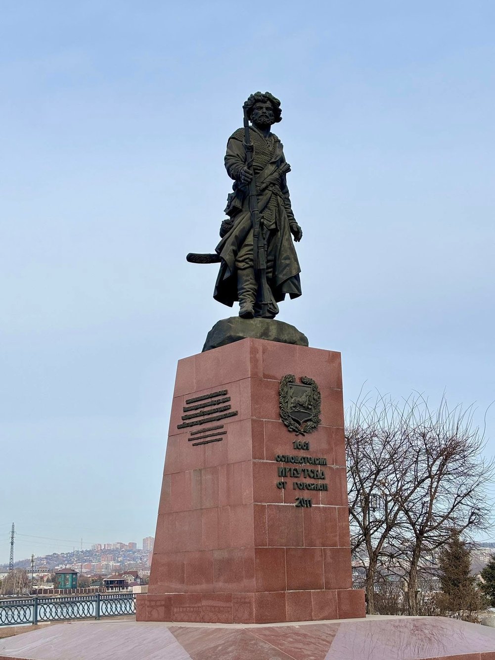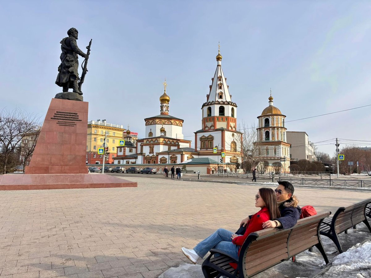 อนุสาวรีย์ผู้ก่อตั้งเมือง Irkutsk และโบสถ์ใกล้ๆ เป็นอีกมุมคลาสสิกของเมือง
