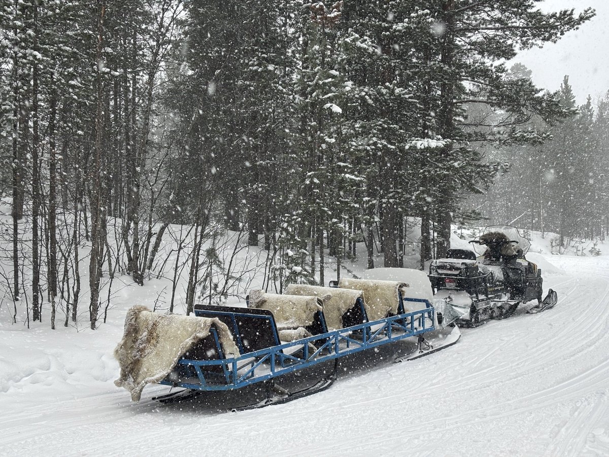 ออกจากเมืองไปสักพักหิมะเริ่มตกหนัก ออกอารมณ์หนังต่างประเทศแบบเต็มจอ พอถึงจุดหนึ่งรถต้องจอดด้านนอกแล้วเปลี่ยนไปนั่ง Snowmobile sled ต่อเข้าไปในฟาร์ม