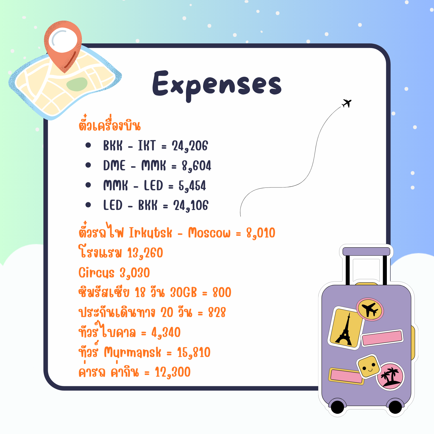 ปล. ข้อมูลค่าเงินที่ใช้ในทริปนี้อ้างอิงช่วงมีนาคม 2568 : 1 รูเบิล ≈ 0.4 บาท