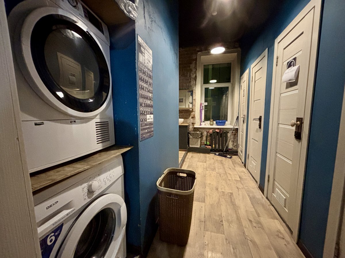มีครัวให้ทำอาหารเอง เครื่องซัก–อบผ้าครั้งละ 350 รูเบิล (ประมาณ 6 กก.)