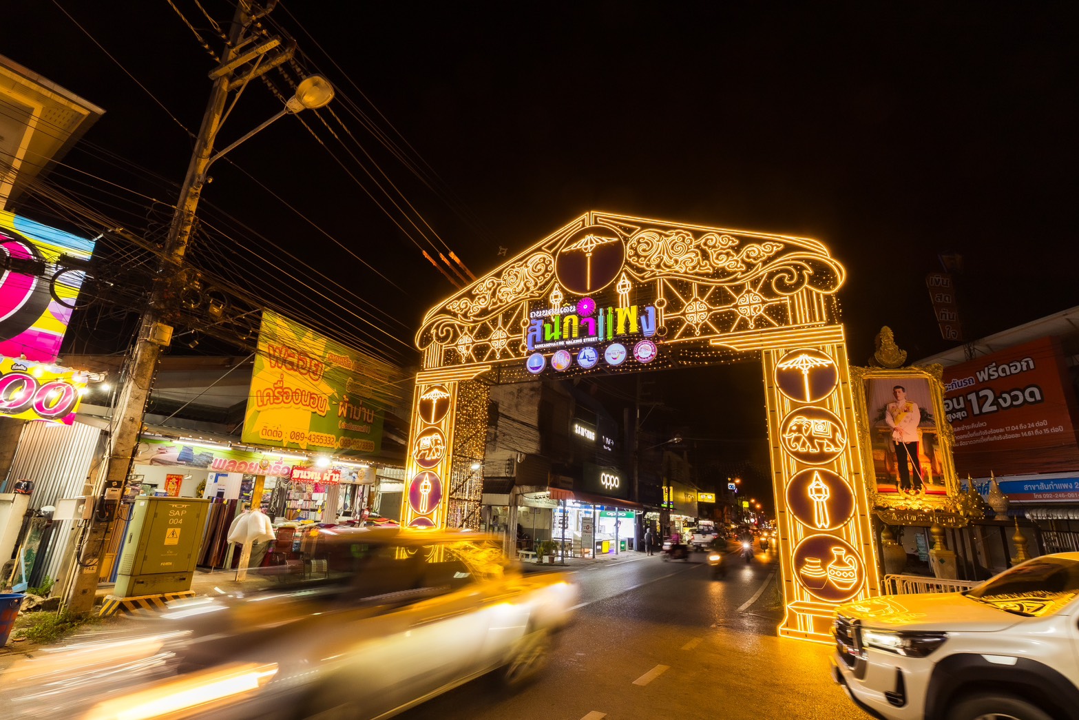 อินสไปร์จากร่มบ่อสร้างอันเลื่องชื่อ ผสานสีสันกับแสงให้ถนนสวยสะดุดตา